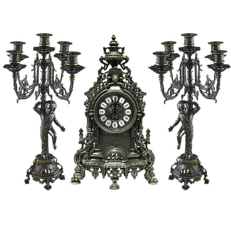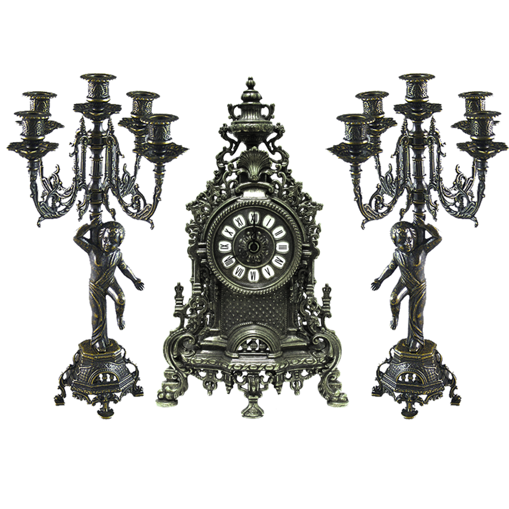Часы каминные и 2 канделябра "Купидон" на 5 свечей, 3 предм), под бронзу