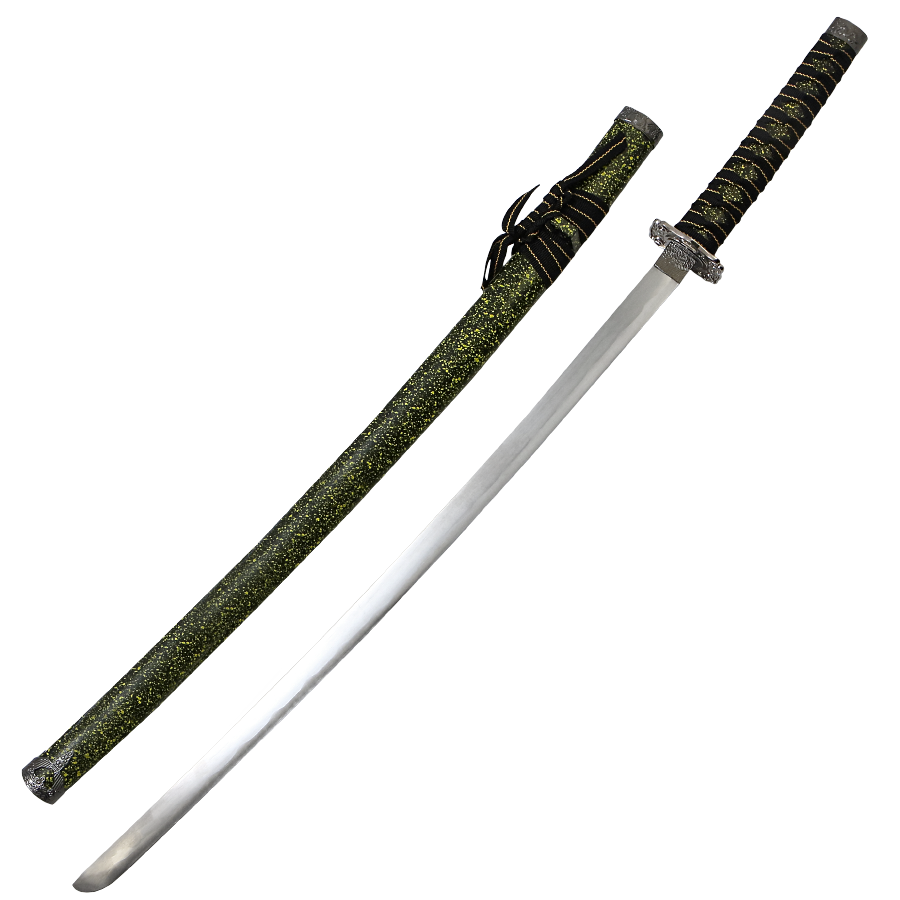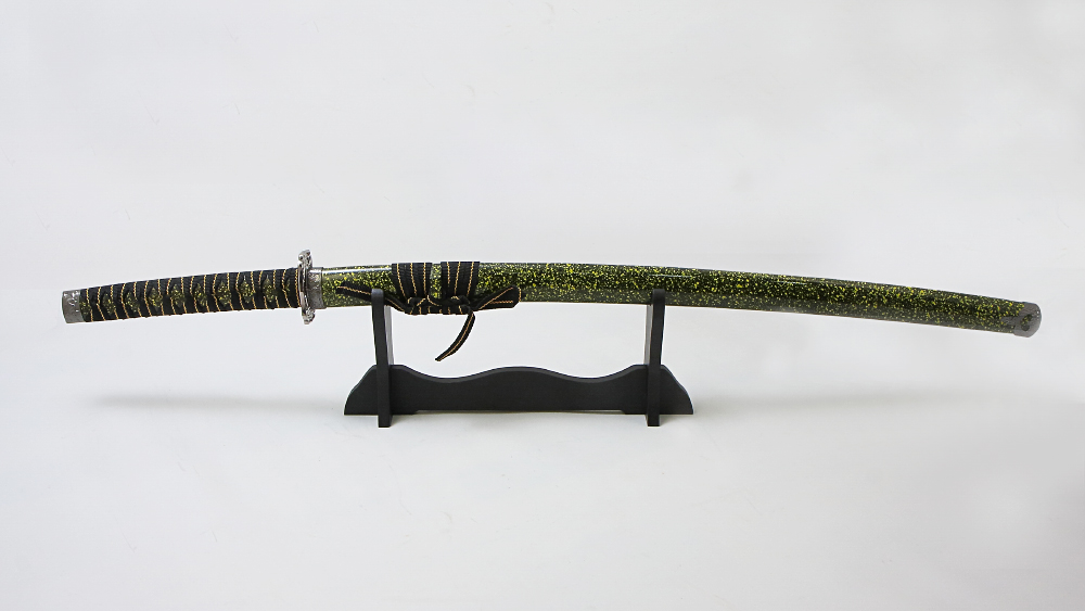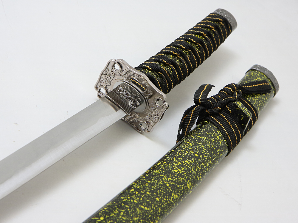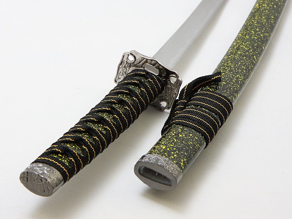 Меч самурайский. Ножны черные с желтым крапом, цуба серебро
