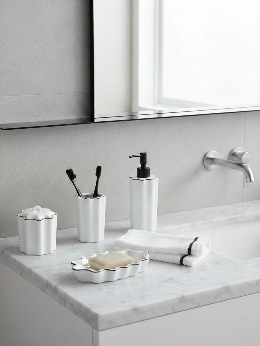 Банка из коллекции Camellia подойдет для хранения ватных дисков или палочек, соли для ванной, а также других предметов ухода. Плавные волнообразные изгибы корпуса создают неповторимую игру света и тени и дарят приятные тактильные ощущения.
