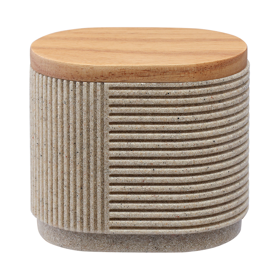 Банка для хранения Dune – отличное решение для тех, кто любит сочетание базовых оттенков и необычных фактур. Вы можете хранить в ней средства гигиены и другие предметы, а также использовать в качестве декоративного элемента.