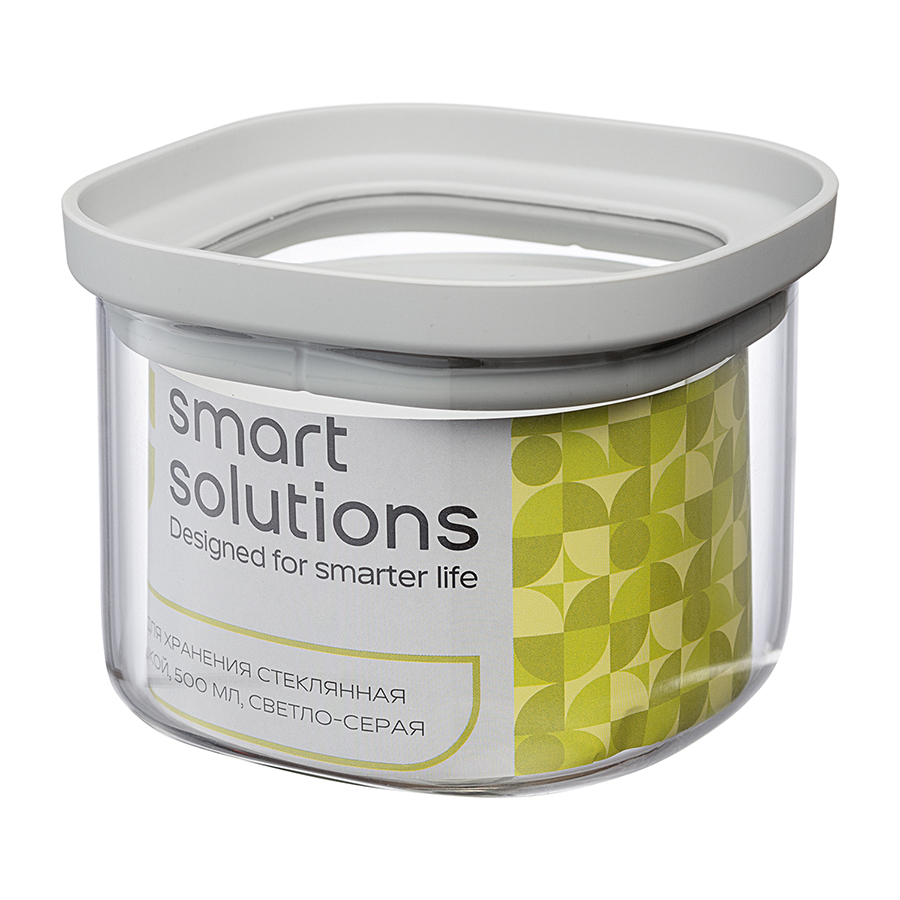 Банка для хранения квадратная Vacuum Glass, 500 мл, светло-серая