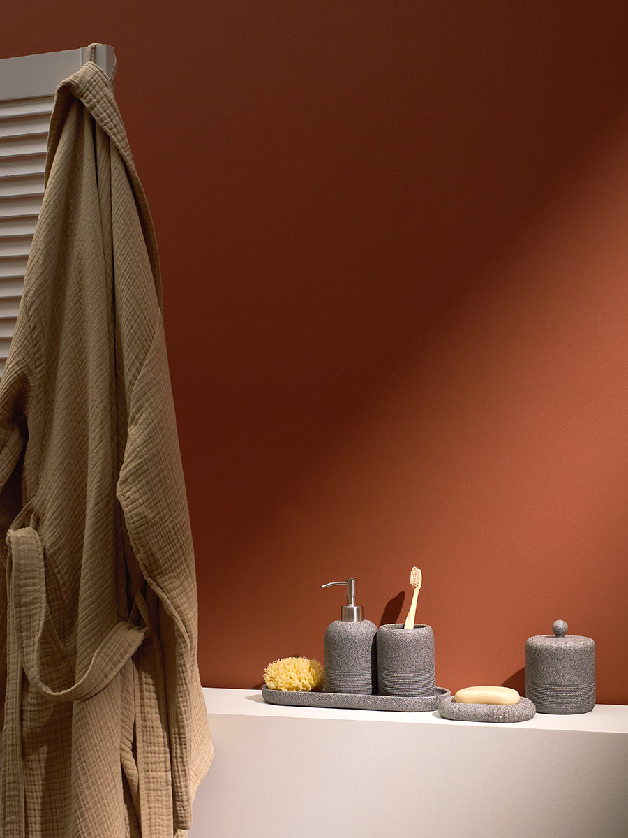 Банка для хранения Loup имеет корпус и крышку из полирезина, стилизованного под натуральный камень графитового оттенка.