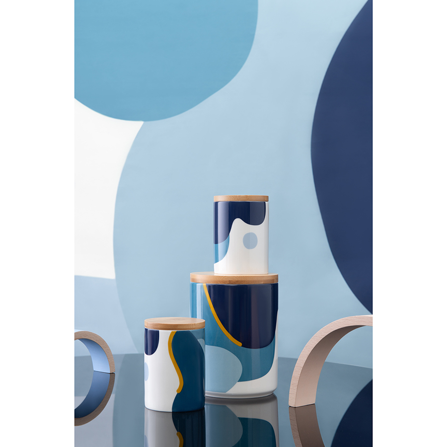 Банка для хранения синего цвета с авторским принтом из коллекции Freak Fruit подойдет для хранения бакалеи. Изделие в духе абстракционизма притягивает взгляды, освежает интерьер и делает его более современным. Принт не имеет повторяющегося раппорта и представляет собой единую законченную картину.