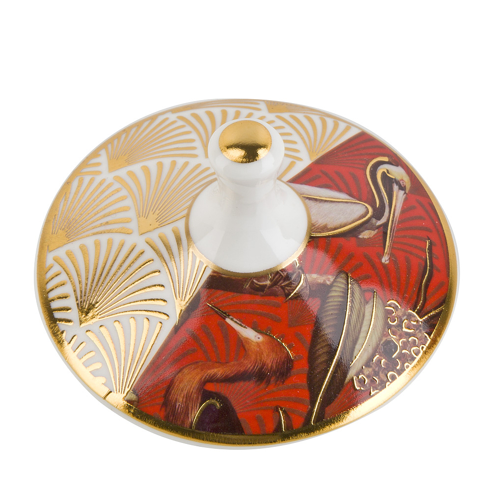 Особенностью этой коллекции является прекрасный рисунок с изображением пеликанов, которые придают посуде уникальный и оригинальный вид. Каждое изделие украшено золотыми элементами, что добавляет роскоши и изыска. Золотой декор является не только стильным дополнением, но и символом изысканности и роскоши.