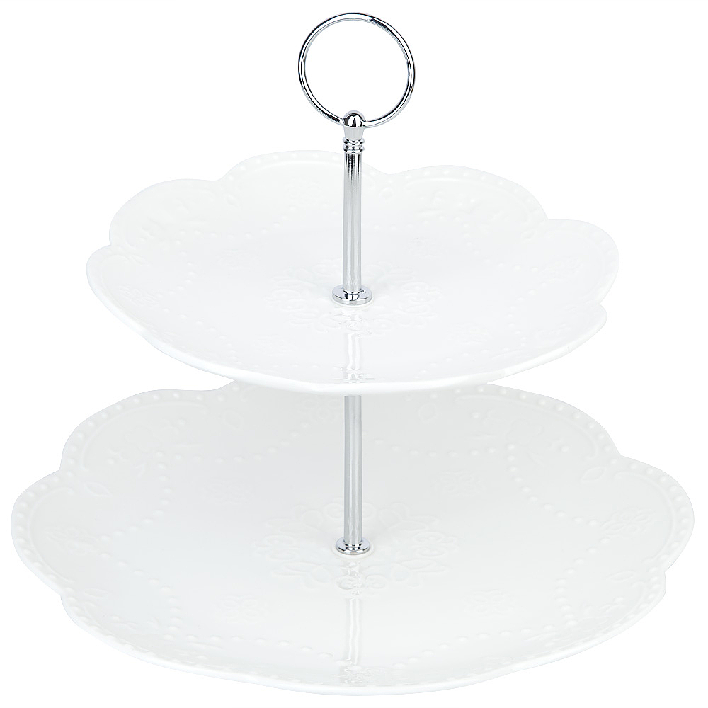 Блюдо 2-х ярусное " " 26,5х26,5/20х20см h=23 см (фарфор) (подарочная упаковка)