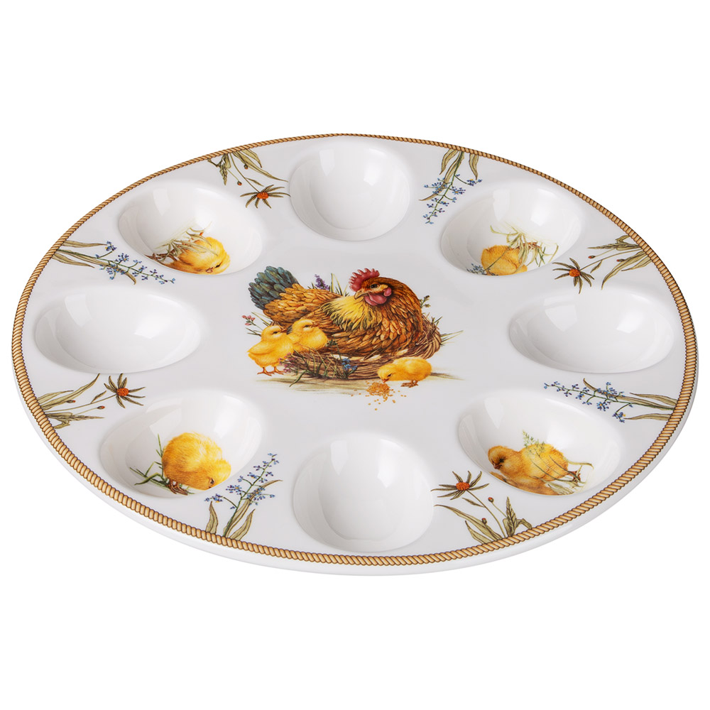 Новинки от ТМ Lefard в коллекции посуды “Sunday” пронизаны духом солнечного настроения и семейного уюта. Каждый предмет – тарелка, салатник или блюдо для яиц - выполнен с любовью, украсит стол и напомнит о простых радостях пасхального утра: аромате кулича, щебете птенцов и теплом свете, пробивающемся сквозь занавески. Посуда выполнена из тонкостенного белоснежного фарфора, украшена рельефным краем, напоминающим тонкие веточки ивы, сплетенные в корзину, покрыта блестящей, устойчивой к износу глазурью, оберегающей чудесный рисунок курочки-пеструшки с желтыми пушистыми цыплятами. Прекрасный подарок родным и близким, друзьям и коллегам к Пасхе и не только, в яркой красочной упаковке. Все изделия прошли сертификацию и безопасны для контакта с пищевыми продуктами, их можно смело мыть в посудомоечной машине и использовать в микроволновой печи.