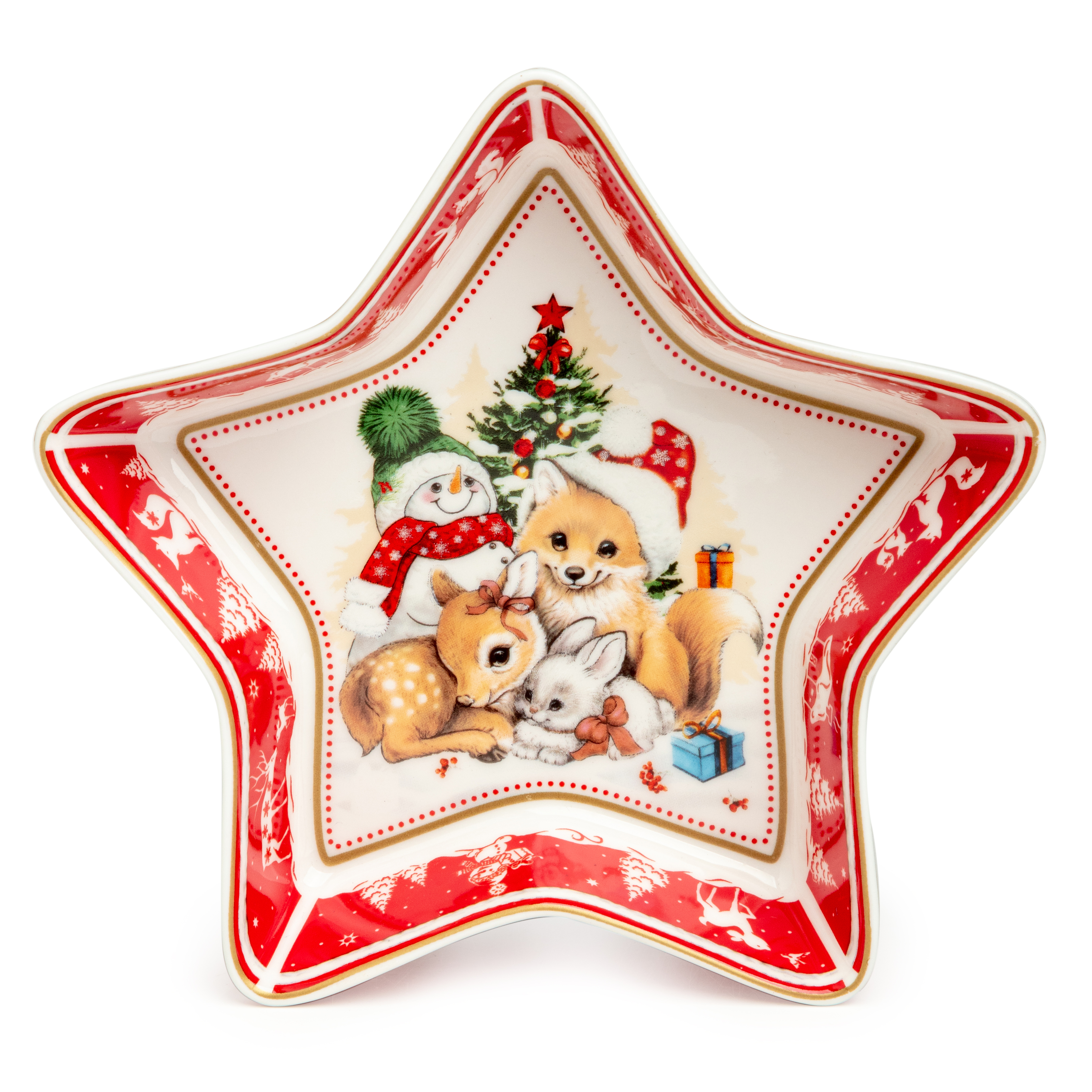 ТМ LEFARD New Year Collection для детей украсит праздничный новогодний стол и порадует Ваших детей в самые ожидаемые дни в году. С 1699 года указам Петра Первого Новый год празднуется в ночь на 1 января каждого года (по юлианскому календарю). Символом праздника стал дедушка с белой бородой, имя которого - Дед Мороз, и его помощница - девочка из снега по имени Снегурочка. Изделия с любимыми персонажами, лесными жителями и нарядной новогодней Елкой в веселом хороводе выполнены на тонкостенном высококачественном фарфоре. Посуда упакована в яркие коробки. Это прекрасный подарок. Продукция прошла сертификацию, безопасна для контакта с пищевыми продуктами. Можно использовать в СВЧ, не рекомендуется мыть в посудомоечных машинах во избежание повреждения золотой отводки (деколи) на изделиях.