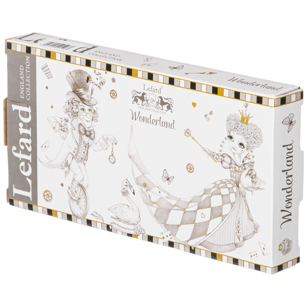 ТМ LEFARD эксклюзивная коллекция «WONDERLAND», созданная по мотивам литературных произведений в стиле фэнтези, на которых воспитывалось не одно поколение детей и выросших взрослых. Удивительную историю девочки, встретившей говорящего Белого Кролика и загадочного Чеширского Кота знает практически каждый на планете. В жизни возможно все, надо лишь в это поверить. Широкий ассортимент тарелок, салатников, кружек, чайных пар поможет организовать «волшебное» чаепитие. Все изделия выполнены из качественного тонкого фарфора. Прямые современные формы, удобные объемы. Стильная, подарочная упаковка. Дарите сказку друзьям и близким людям!