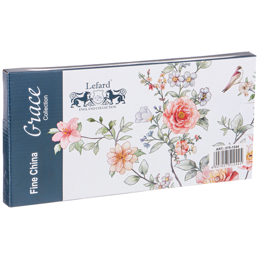 TM LEFARD коллекция "GRACE" выполнена из качественного тонкостенного фарфора в двух базовых цветах: синем и белом. Гармоничное сочетание изящного орнамента и нежных цветов. Удобные формы. Большой выбор предметов для сервировки. Легко составить свою неповторимую по наполнению и цвету коллекцию посуды как для торжественных случаев, так и на каждый день. Красочная упаковка. Хороший подарок. Продукция прошла сертификацию и безопасна для контакта с пищевыми продуктами. Не использовать в микроволновой печи, не рекомендуется мыть в посудомоечной машине.