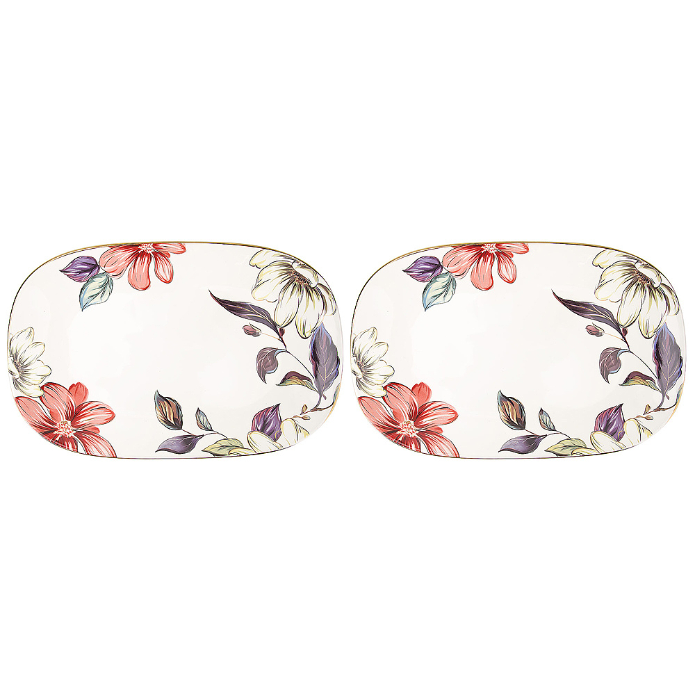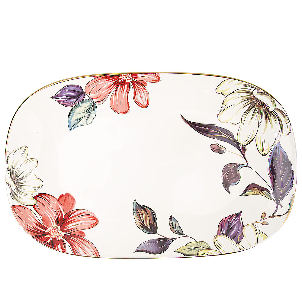 Блюдо сервировочное (с элементами золота) "Олеандр" 30*19*3см. (min6) (транспортная упаковка)