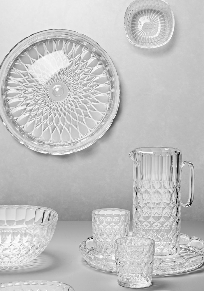 Сервировочное блюдо с крышкой Vanity от итальянского бренда Guzzini – необычная посуда, в которой гармонично сочетаются привлекательный дизайн и практичность. Благодаря высокой устойчивости современного органического материала к внешним воздействиям, она идеально подходит для сервировки как в помещении, так и на свежем воздухе. Инновационное акриловое стекло на биооснове получают из растительных отходов. За счет особенной рельефной поверхности и ярких цветов предметы изящно переливаются на свету, что делает их еще более привлекательными.