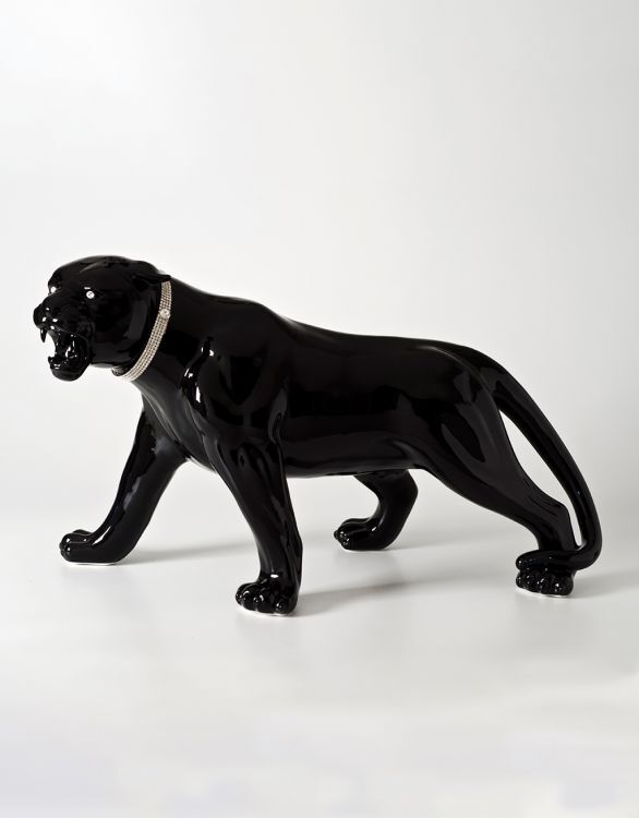 Скульптура ростовая интерьерная " Черная Пантера" с ожерельем с кристаллами Swarowski