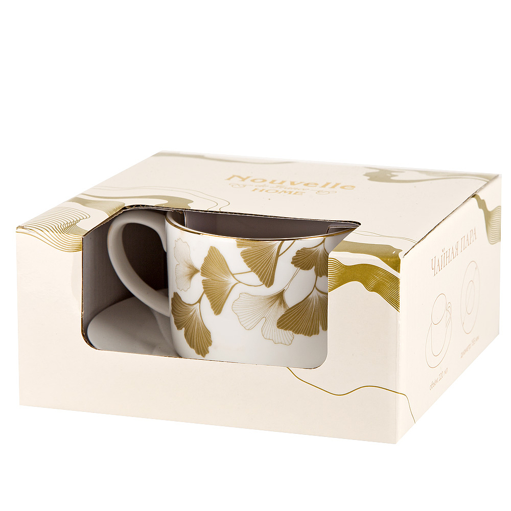 Чайная пара "Ginkgo" костяной фарфор v=220 мл (подарочная упаковка)