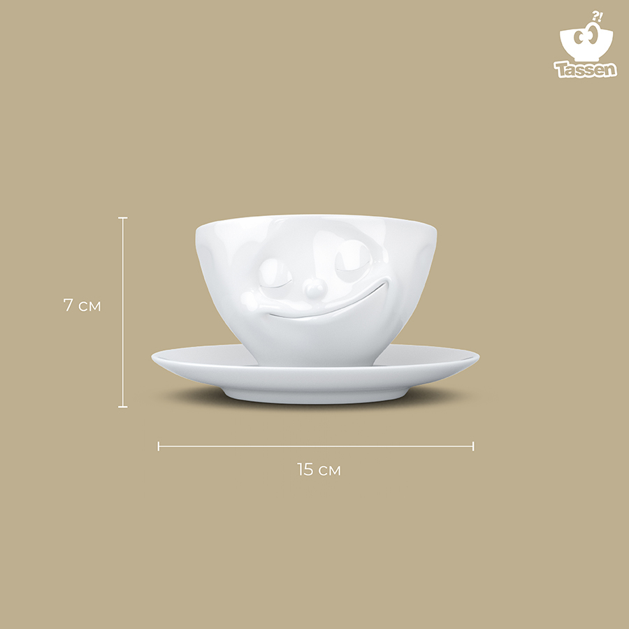 Комплект из оригинальной чашки и блюдца отлично подойдет для подачи кофе и чая.