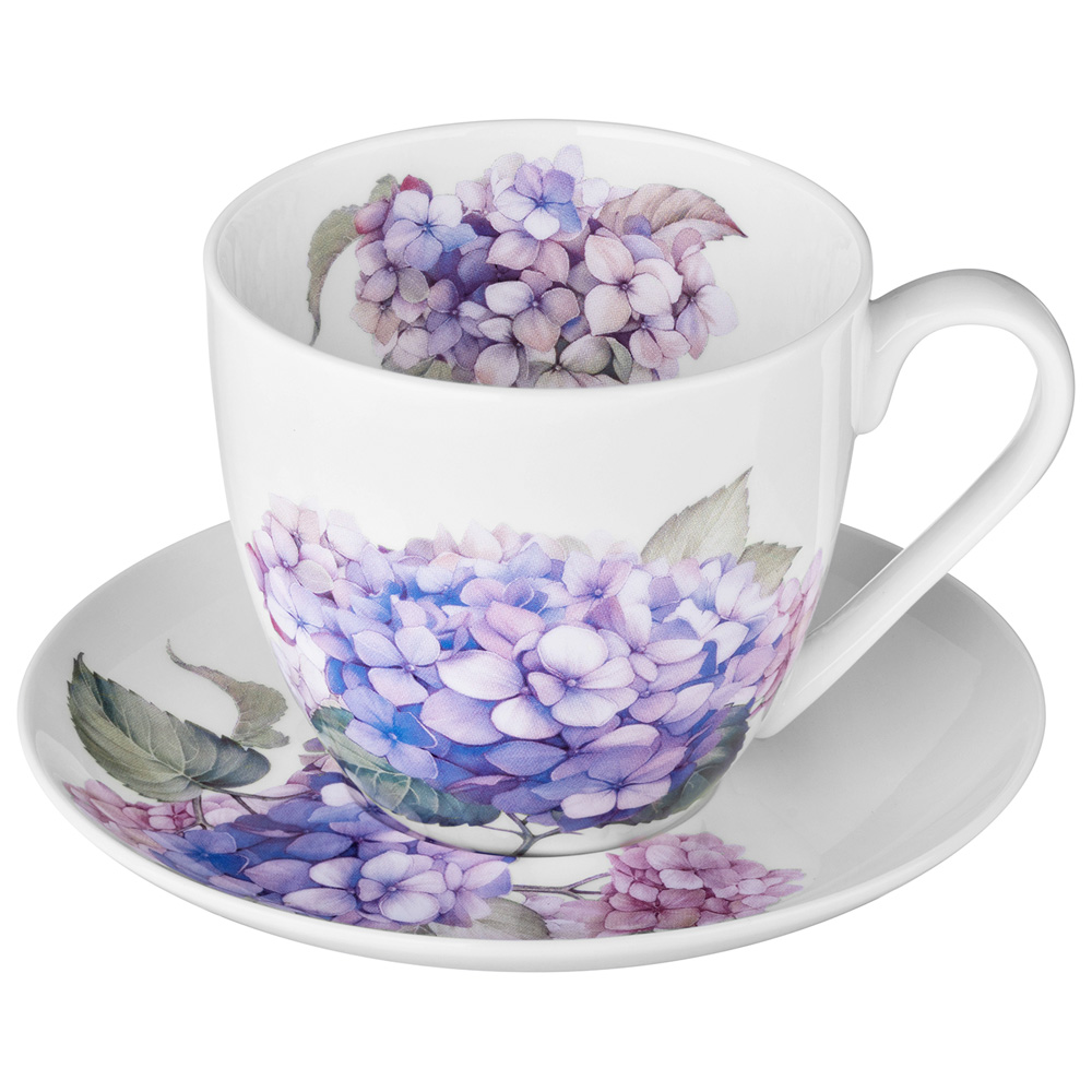 Коллекция включает наборы посуды, обеденные и закусочные тарелки, кружки, салатники, чайные пары и чайные наборы. Каждый предмет достоин стать подарком по любому поводу, а несколько предметов коллекции создадут неповторимый интерьер и настроение. Выбирайте и дарите предметы этой коллекции по любому случаю Вашим любимым, родным и знакомым. Гортензии очаровательны. При дарении они точно вызовут массу положительных эмоций и будут оценены по достоинству.