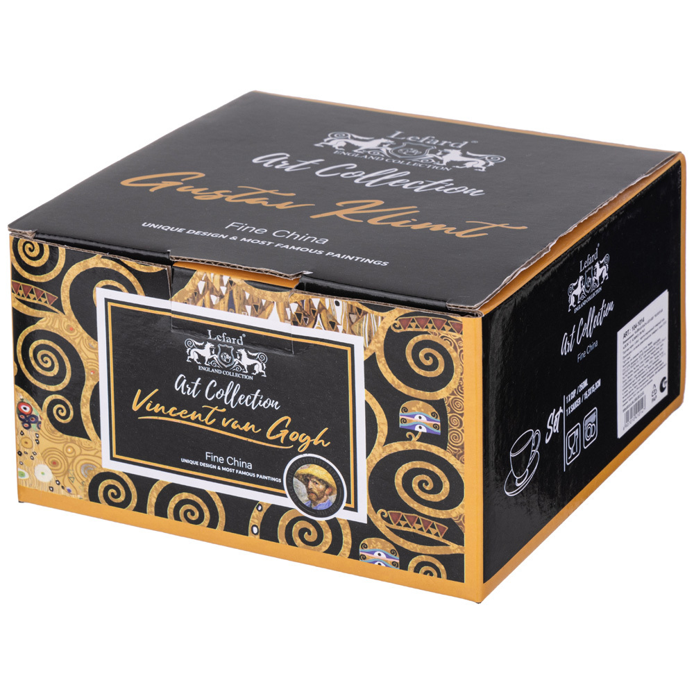 Арт Коллекция для ценителей прекрасного. Изделия из тонкостенного фарфора. Посуда прошла сертификацию. Безопасна для контакта с пищевыми продуктами. Декор по мотивам картин Густава Климта. Удобная форма. Отличный подарок. Можно использовать в микроволновой печи и мыть в посудомоечной машине.