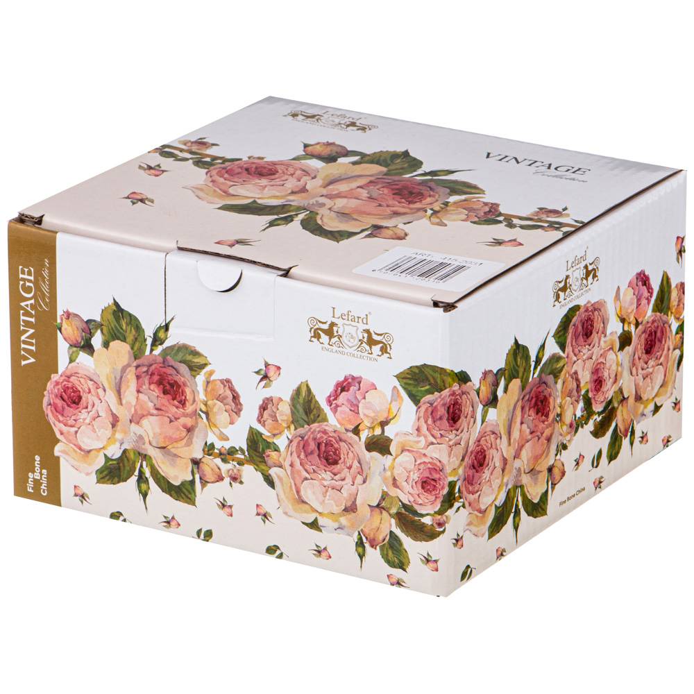 Коллекция посуды "Винтаж" TM Lefard на белоснежном костяном фарфоре. Современные мягкие формы тарелок, салатников, чашек и кружек... Отличная сервировка стола на каждый день и для торжественных случаев. Эксклюзивная деколь. Прекрасно сочетается с белой посудой коллекции "Шелк". Отличный подарок. Посуда прошла сертификацию. Безопасно для контакта с пищевыми продуктами. Мыть мягкими моющими неабразивными средствами. Можно смело использовать в микроволновой печи, мыть в посудомоечной машине.