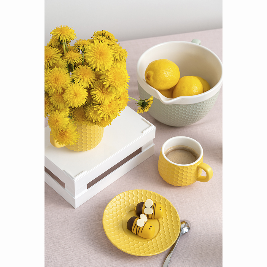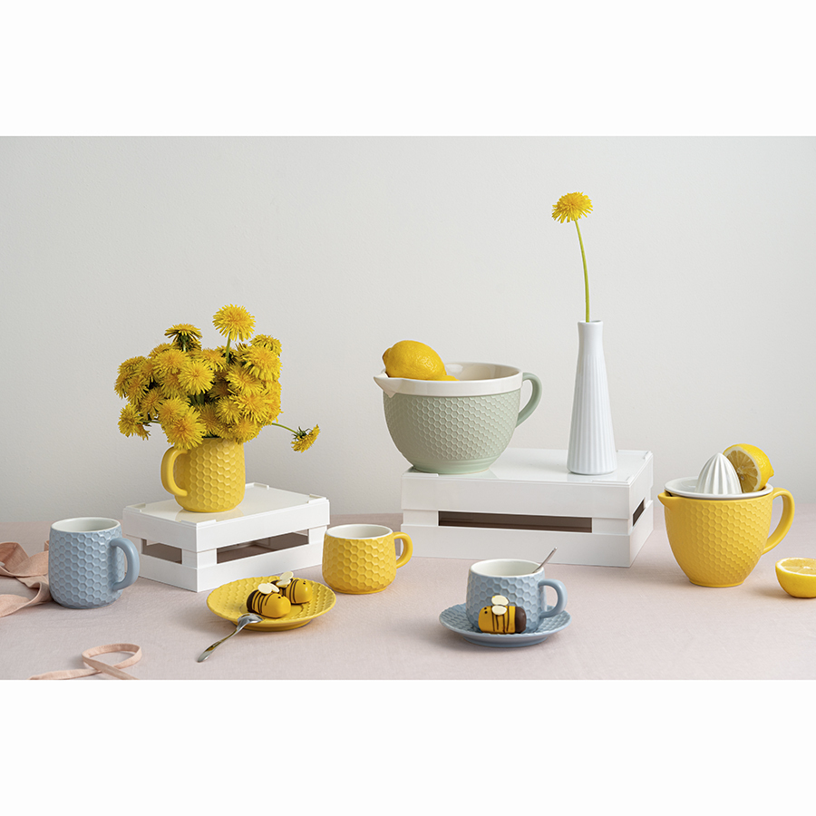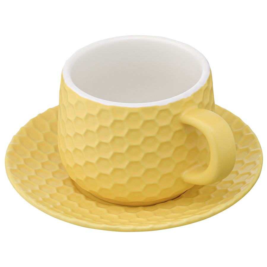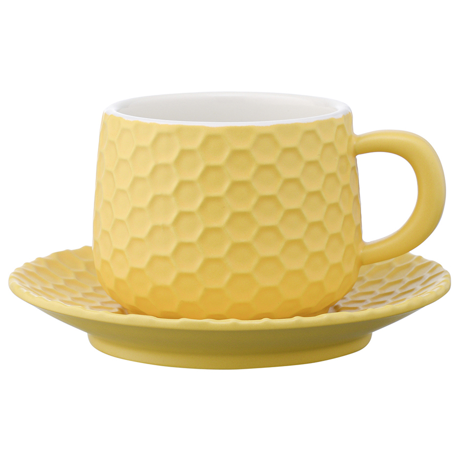 Чайная пара из коллекции Marshmallow – оптимальный вариант для тех, кто предпочитает сочетание практичности и необычного дизайна. Чашка и блюдце выполнены из каменной керамики с отличными эксплуатационными свойствами, среди которых экологичность, устойчивость к износу и температурным перепадам. Материал не впитывает запахи и загрязнения. Глазурованное покрытие легко очищается, обеспечивает изделиям декоративный вид и защищает от внешних воздействий. Узор, напоминающий соты, и интересная утолщенная ручка придают посуде особый шарм.