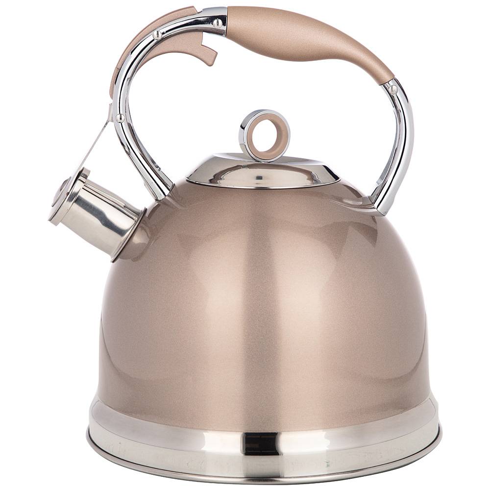 ЧАЙНИК AGNESS СО СВИСТКОМ, 3Л C ИНДУКЦИОН. КАПСУЛЬНЫМ ДНОМ, СТАЛЬ 18/10, ЦВЕТ:ШАМПАНЬ