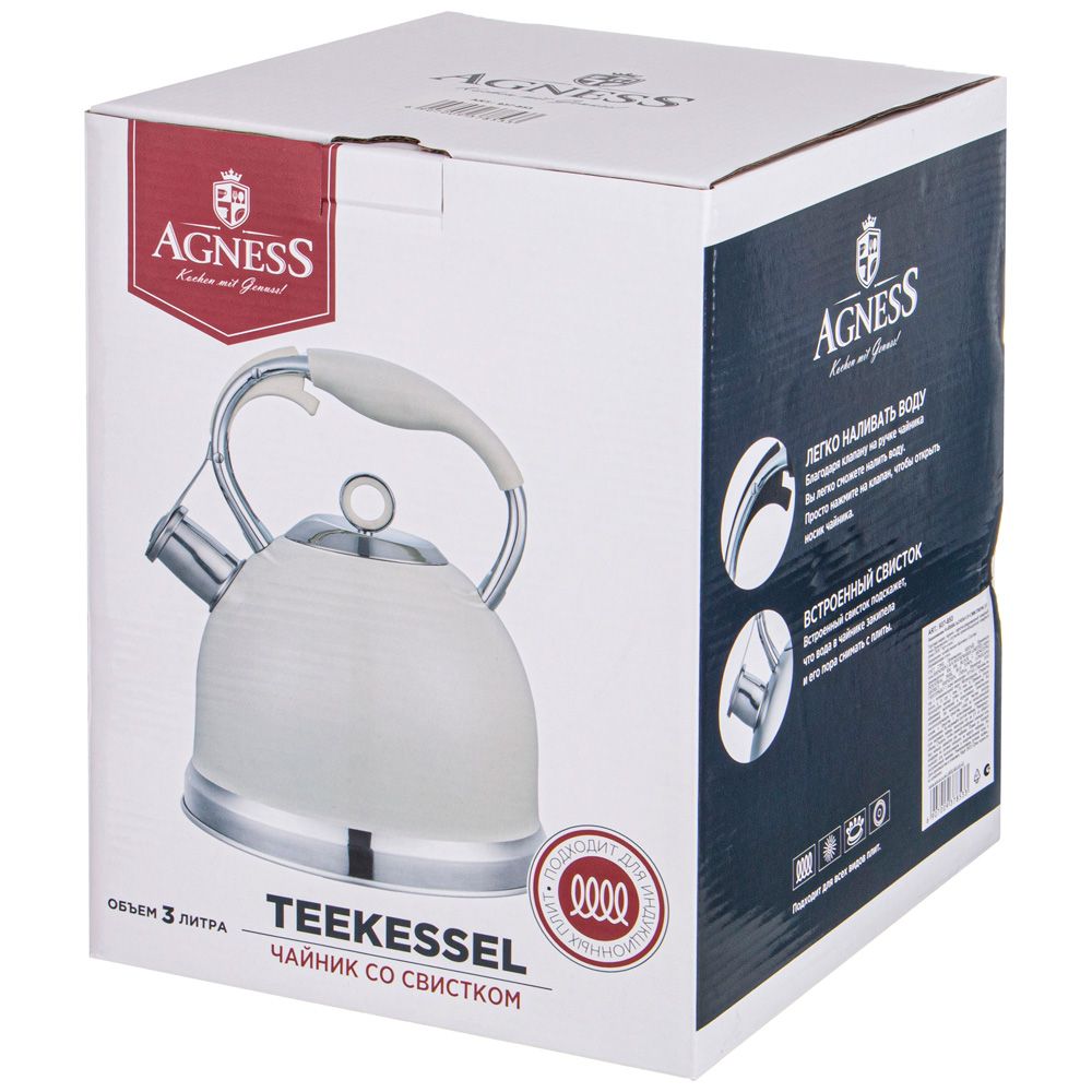 Чайник AGNESS - это надежность, функциональность и стильный дизайн. Чайник выполнен из нержавеющей стали - наиболее прочного и гигиеничного материала. Преимущества:
