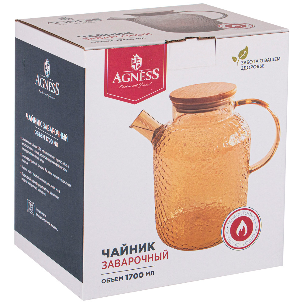 Чайник выполнен из термостойкого жаропрочного боросиликатного стекла, которое выдерживает высокую температуру воды.