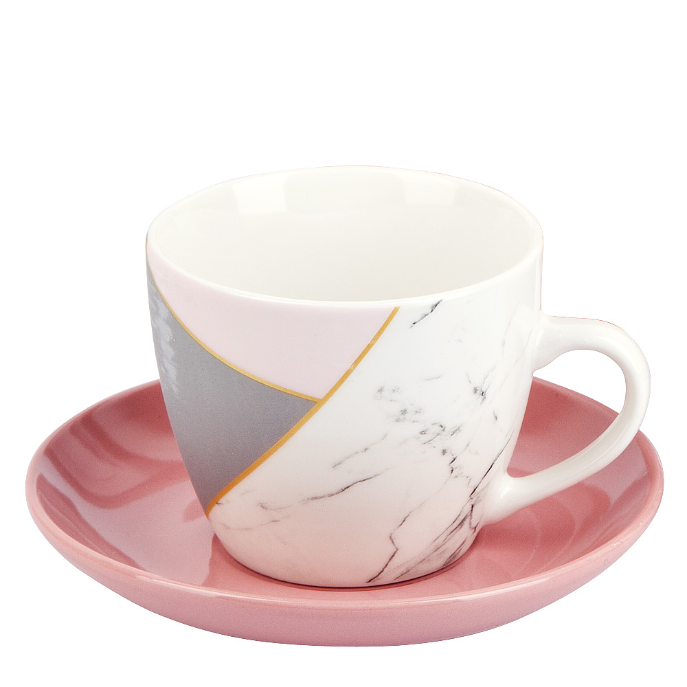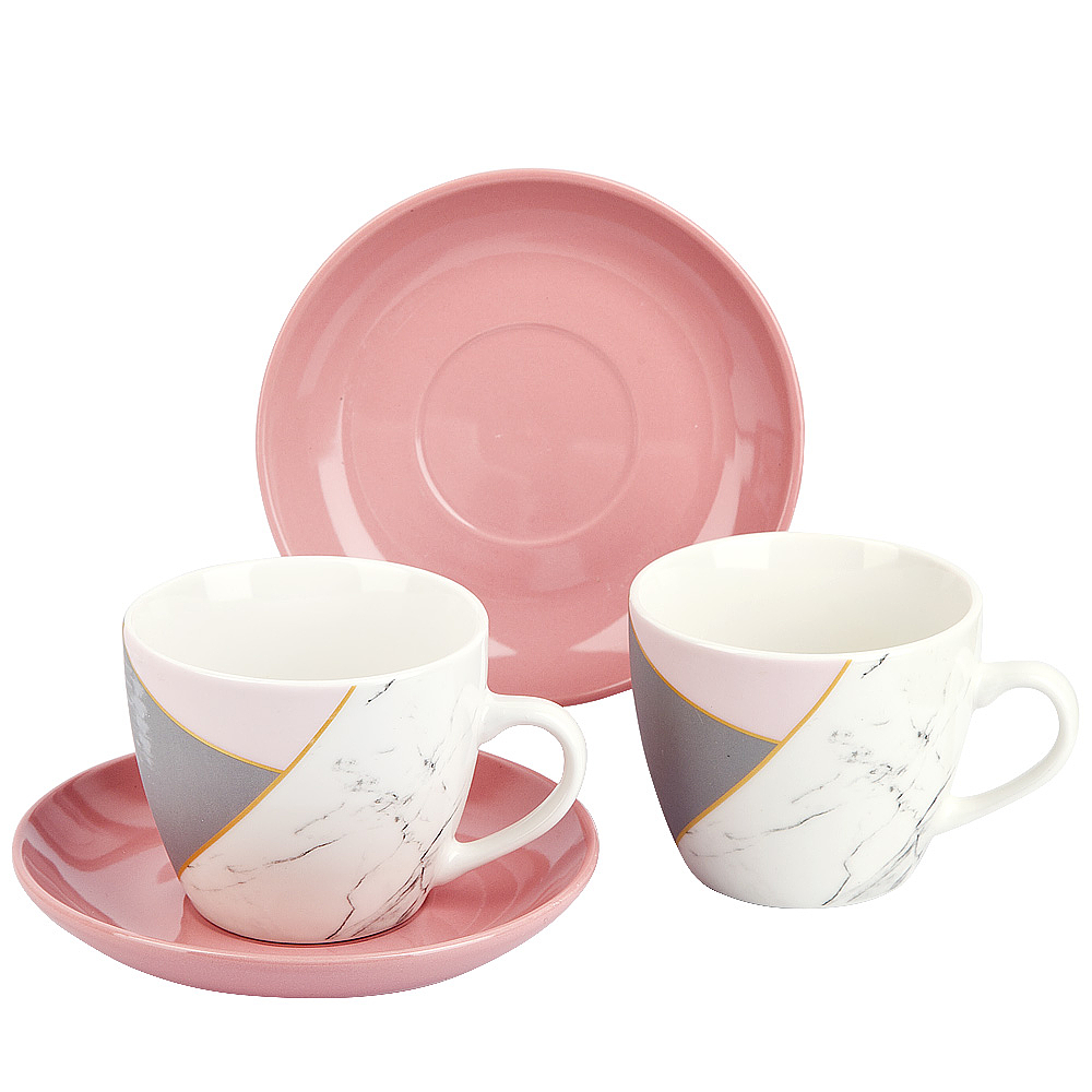 Чайный набор 4пр (2персоны) " розовый с серым" v=240мл (подарочная упаковка)