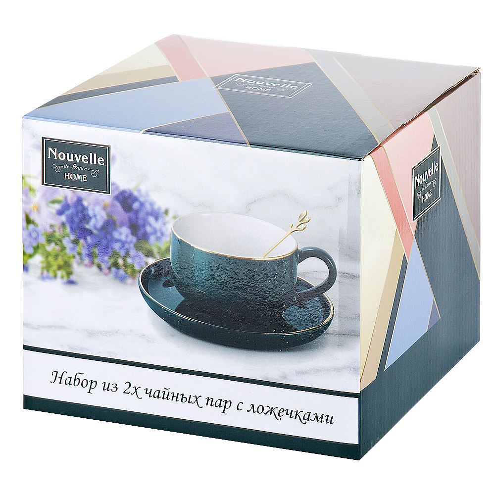 Чайный набор 4пр. с ложками "Royal line. Emerald" (2 персоны) v=350мл. (подарочная упаковка)