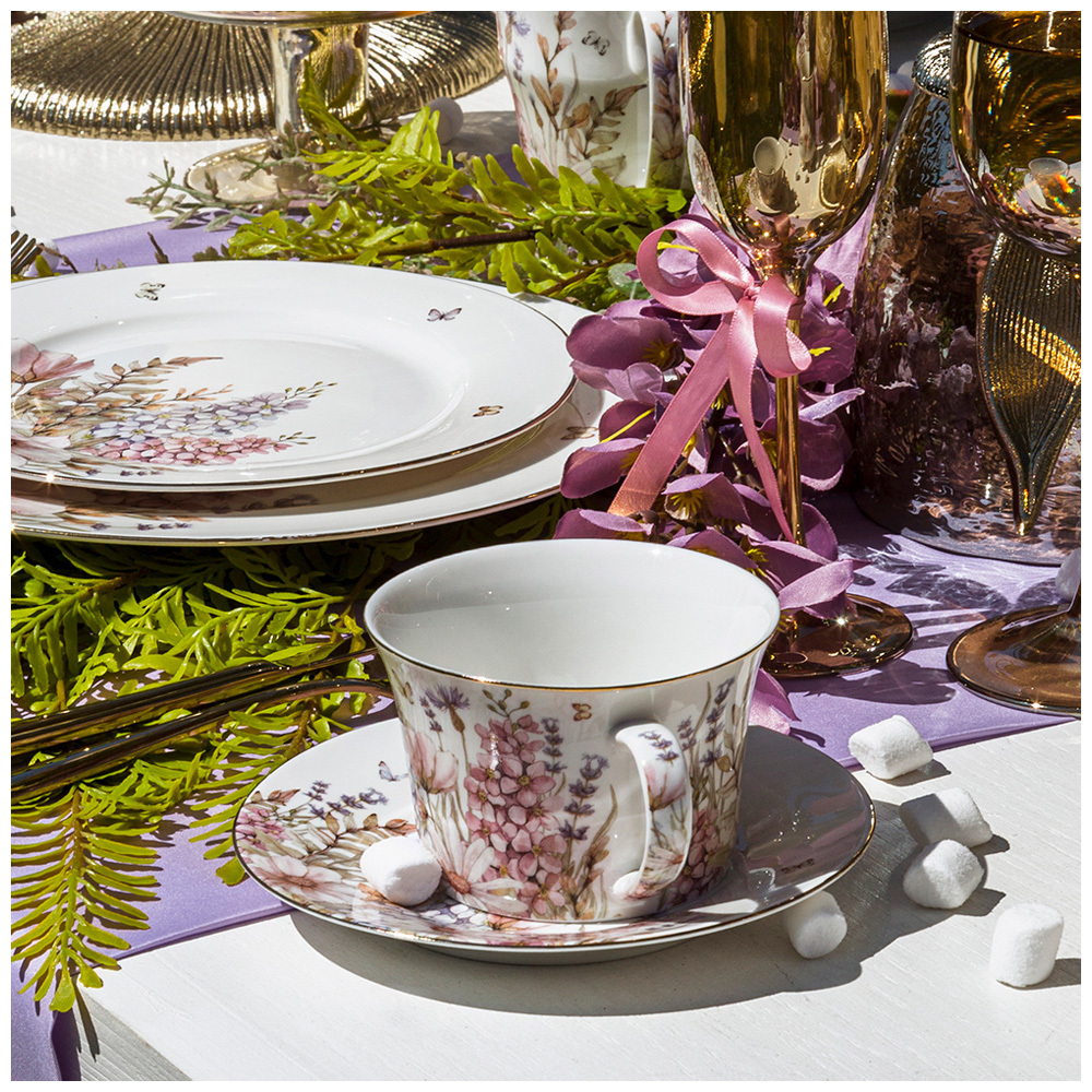 TM Lefard «Дворцовый парк» - это эксклюзивная коллекция посуды и предметов сервировки, выполненная на тонкостенном фарфоре. Дизайн создан профессиональными художниками. Стильная форма, вместительный объем, уникальная цветочная деколь, золотая окантовка - все это делает коллекцию неотразимой и очень привлекательной. Это прекрасный подарок в красочной индивидуальной упаковке. Подходит для ежедневного использования и для праздничной сервировки стола. Нельзя использовать в микроволновой печи, не рекомендуется мыть в посудомоечной машине во избежание повреждения золотой отводки. Посуда прошла сертификацию. Безопасна для контакта с пищевыми продуктами.
