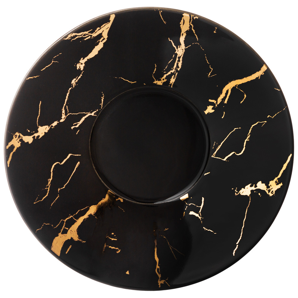 Коллекция "Fantasy" ТМ LEFARD - это модная сервировка стола и стильный кухонный интерьер в классическом черном с золотом цвете. Блюда и формы различных размеров, менажницы на бамбуковых подставках, банки, тарелки и салатники различного назначения, чайники, чайные пары и кружки выполнены из упрочненного фарфора. Четкие линии, сверкающее глянцевое покрытие. Вы и Ваш стол неотразим! Посуда прошла сертификацию. Безопасна для контакта с пищевыми продуктами. Можно использовать в микроволновой печи. Не рекомендуется мыть в посудомоечной машине.