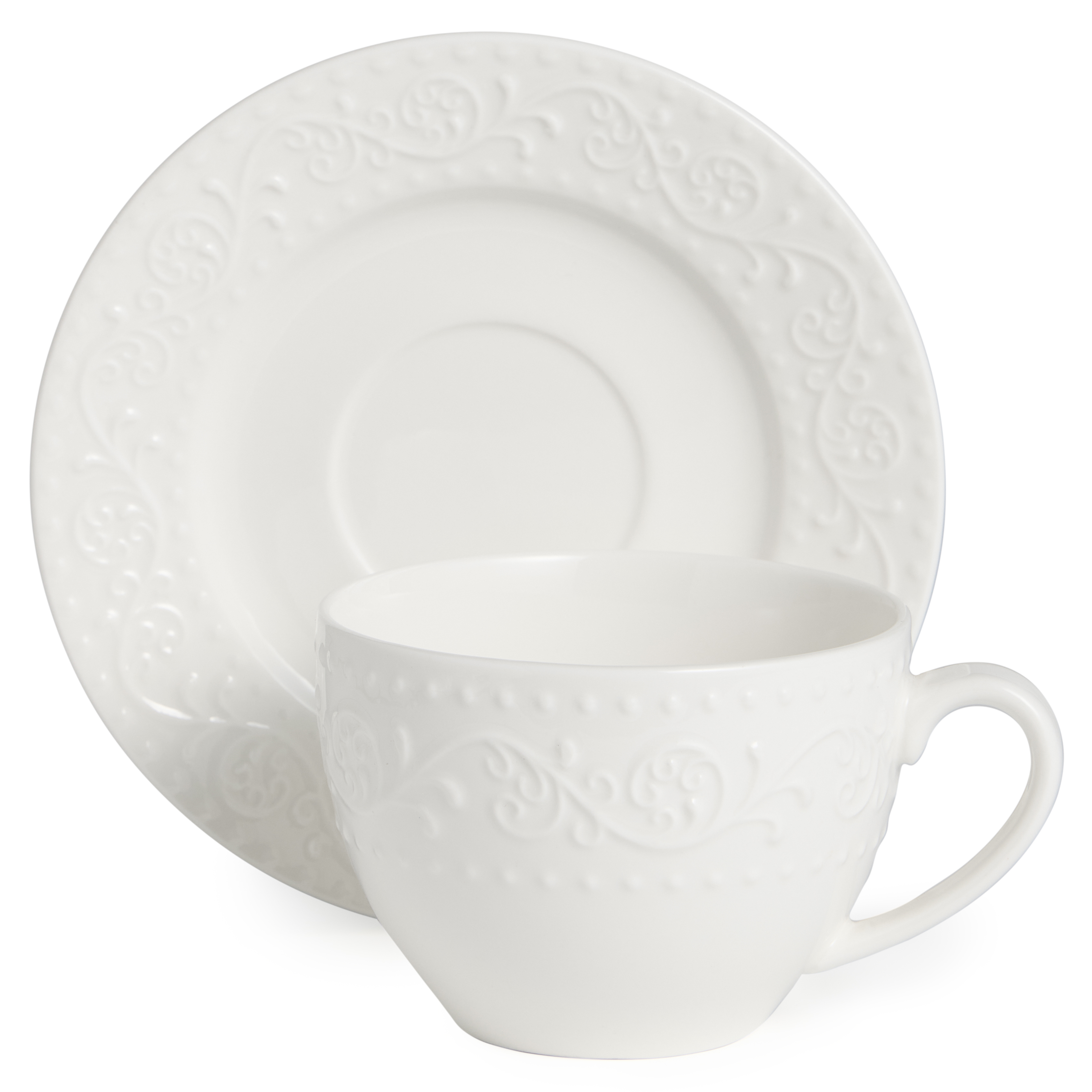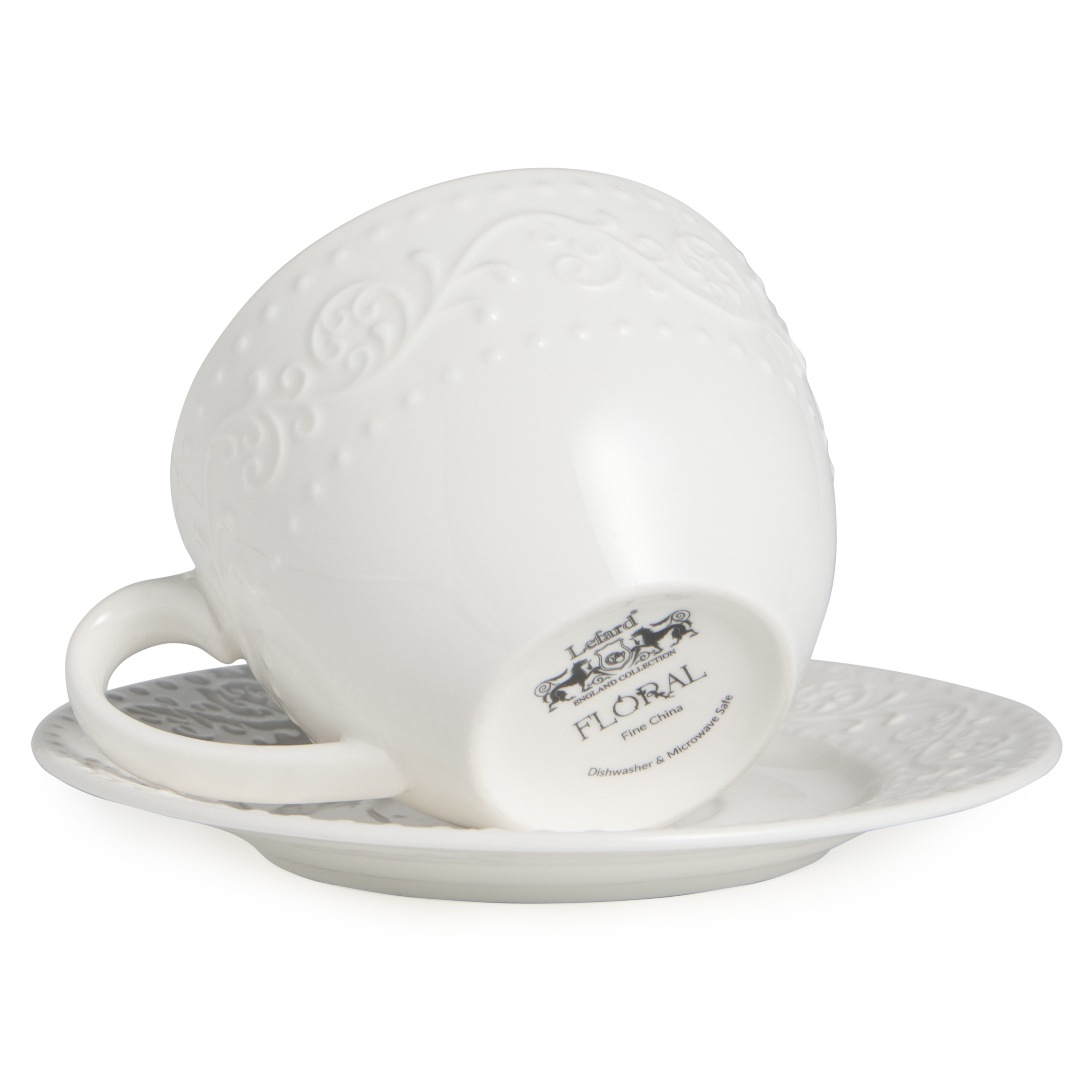 ТМ LEFARD рекомендует белую рельефную посуду коллекции FLORAL из фарфора Fine China, более простого и дешёвого нового материала, где в составе имеется искусственный минерал, который улучшает характеристики фарфора, делая его прочнее, тоньше и легче. Красивый орнамент, изящный внешний вид, удобные формы, оптимальные размеры, широкий ассортимент. Все это сделало коллекцию незаменимой на кухне. Большие глубокие овальные и круглое блюда, салатники разных размеров, тарелки, чайные пары и кружки хороши для подачи самых разнообразных блюд со всех концов света. Все товары сертифицированны и безопасны для контакта с продуктами. Изделия можно смело мыть в посудомоечной машине. Разрешено использование в микроволновой печи.