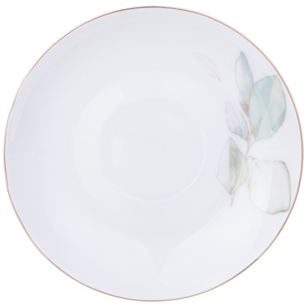 ТМ LEFARD коллекция INSPIRATION из костяного фарфора благородного молочного цвета. Изделия прочные, тонкие и легкие. Стенки чашек, кружек, тарелки и салатники просвечиваются, что придаёт посуде особый шарм, воздушность и изящество. Поверхность идеально гладкая, приятная наощупь. За эти свойства костяной фарфор ценится. Посуда из этого материала — признак безупречного вкуса и статуса. Золотой цветок, нежная Лаванда, листья Эвкалипта в сверкающем перламутровом исполнении и тонкая золотая окантовка восхитительны. Тарелки, салатники, чайные и кофейные пары, кружки – это прекрасный подарок для себя и своих близких. Изделиям нужен особый уход, который продлит срок службы и сохранит их первоначальные качества и внешний вид. Рекомендуются только мягкие моющие средства. Нельзя использовать в микроволновой печи, посудомоечной машине.
