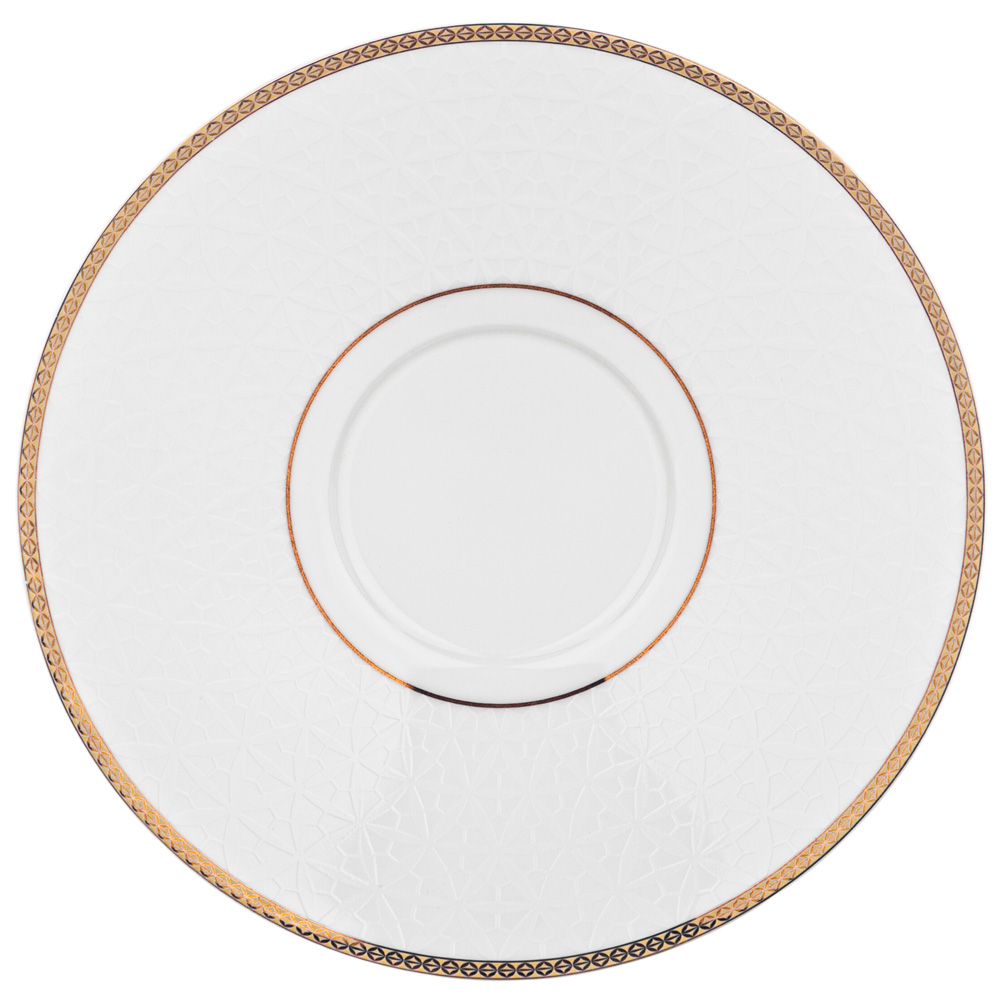 TM Lefard коллекции столовой посуды из костянного фарфора. "OPERA" - это изящный "звездный" орнамент на классических формах с золотой окантовкой. Сочетание стиля и элегантности. Достойный подарок к свадьбе, юбилею и новоселью. 45 % костяной золы сделало изделия тонкими, прочными, прозрачными, мягкого молочного цвета. Изготовление изделий из костяного фарфора не поддаётся автоматизации, производство таких вещей возможно только с использованием ручного труда. Не рекомендуется использовать в микроволной печи, мыть в посудомоечной машине.