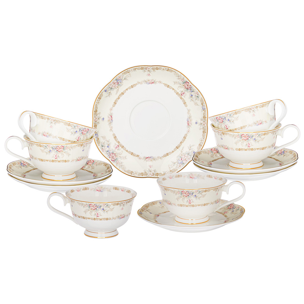 Коллекция «Цветочная аллея» ТМ Lefard сочетает в себе изящество и функциональность. Непревзойденная классика с нежным цветочным декором, отделка золотом, изящная форма и тонкий магнезийный фарфор придают изделиям коллекции неповторимое ощущение легкости и воздушности. Все краски для декора и глазурь соответствуют международным стандартам качества. Не рекомендуется мыть в посудомоечной машине, запрещено использовать в микроволновой печи. Комплектность: чашка 250 мл 6 шт., блюдце 16 см 6 шт.