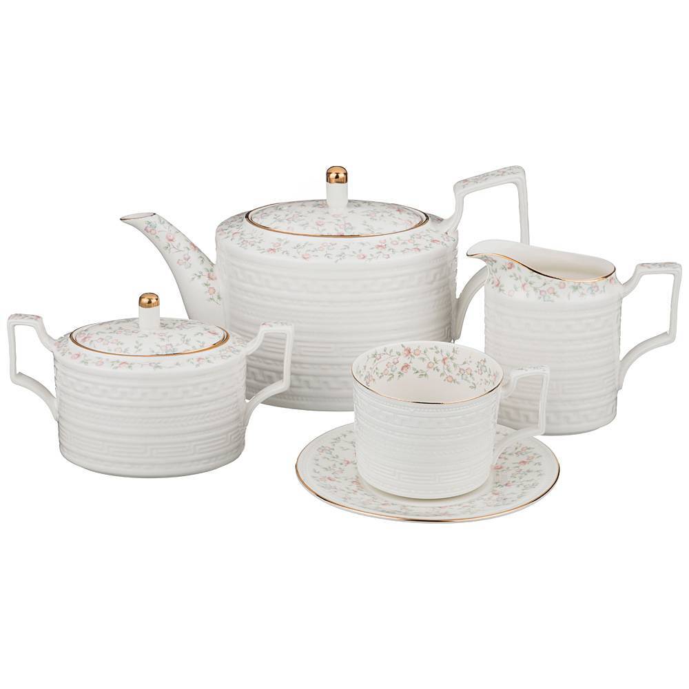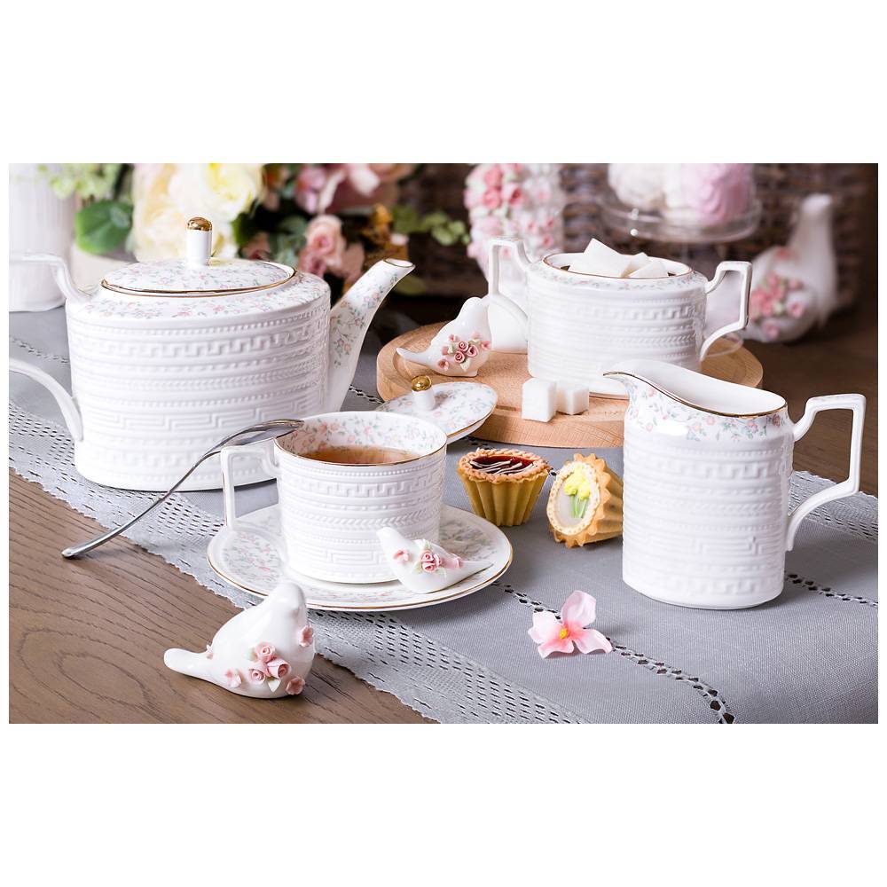 Комплектация: чайник 1100 мл - 1 шт., сахарница 400 мл - 1 шт., молочник 300 мл - 1 шт., чашка 280 мл - 6 шт., блюдце - 6 шт.