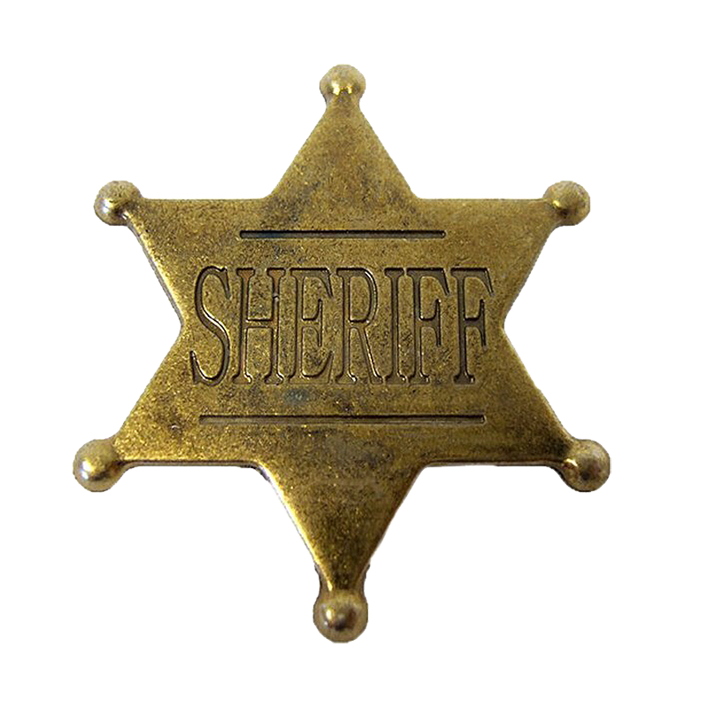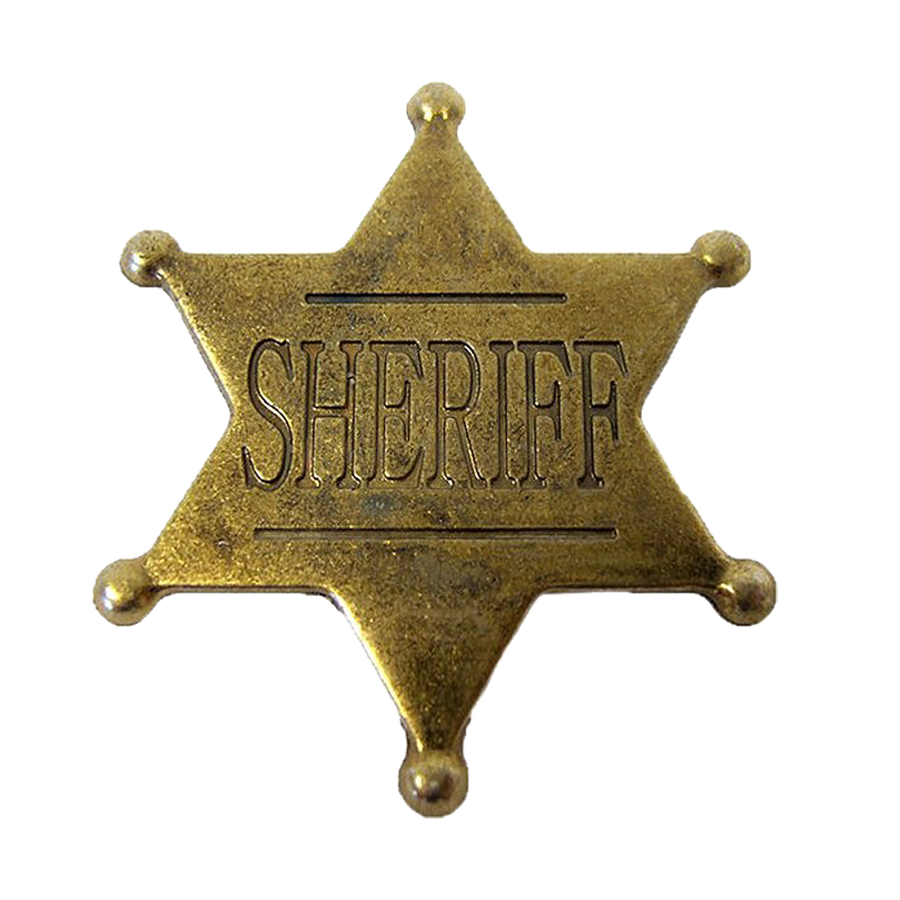 Копия шестиконечной звезды шерифа из металла, с булавкой для крепления на одежду. «Шериф» - сокращение от слова "shirereeve", возникшего в средневековой Англии. Так называли человека, ответственного за отправление правосудия в графстве. Шерифы сегодня – это полицейские в некоторых англосаксонских странах: Великобритании, США, Канаде.