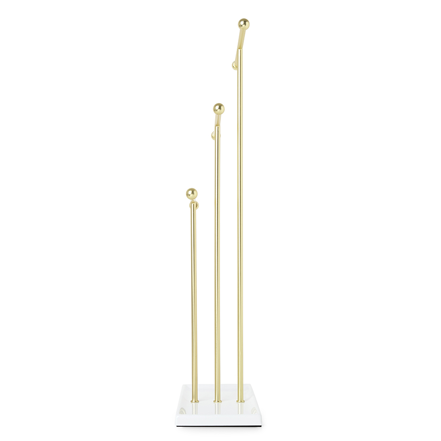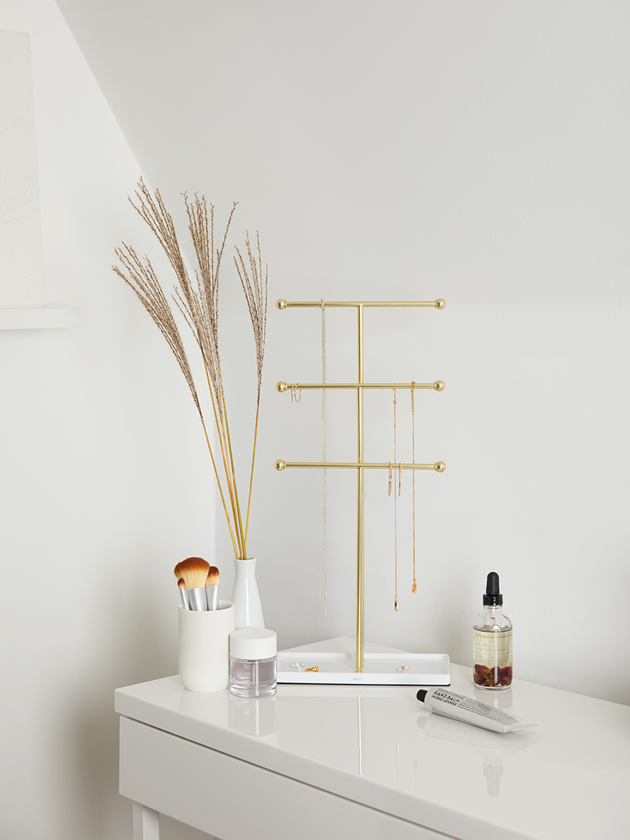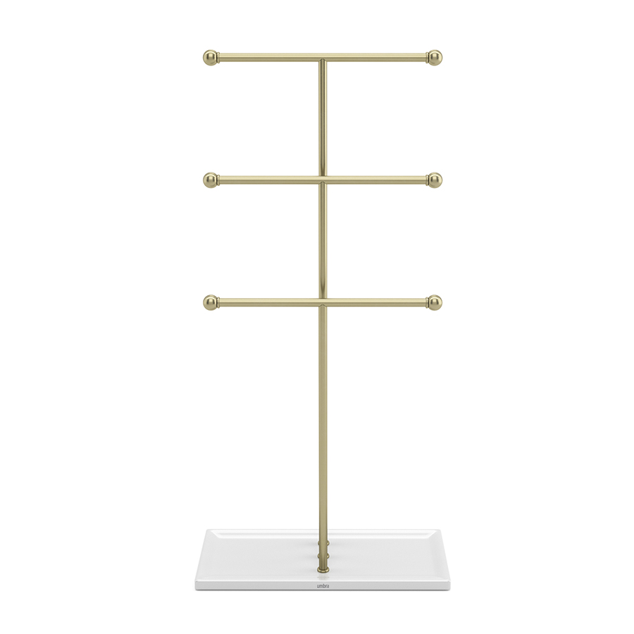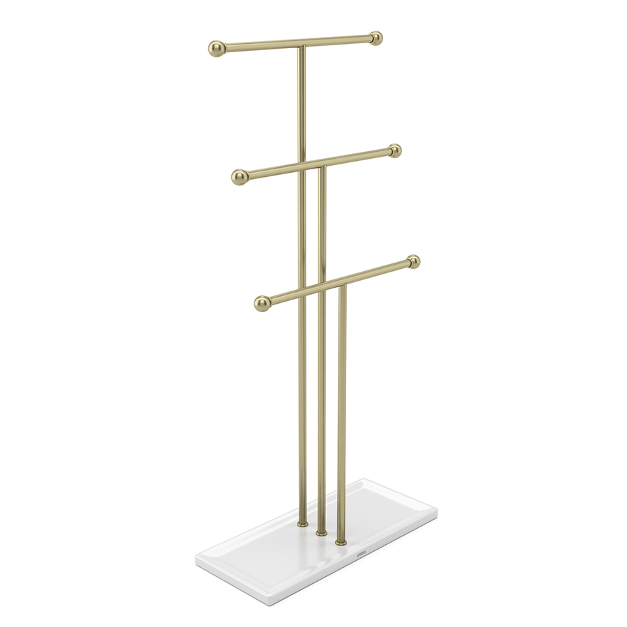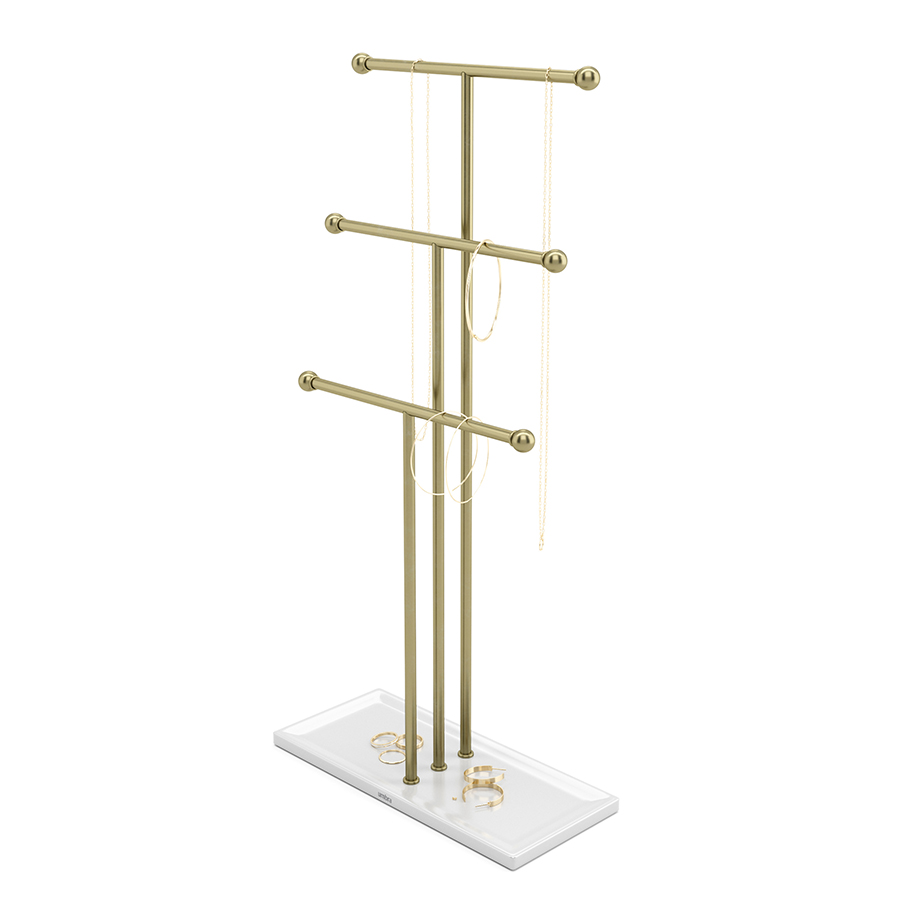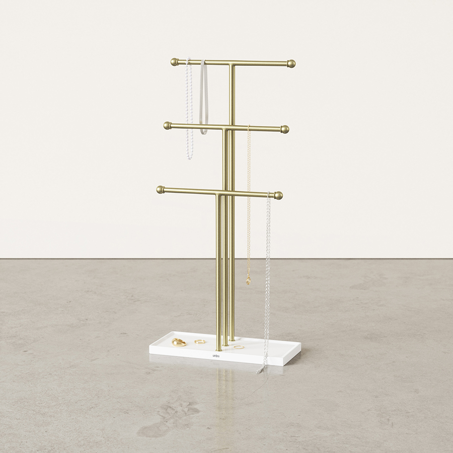 Держатель для украшений Trigem — это элегантное решение для хранения драгоценностей. Три перекладины, расположенные на разной высоте, создают идеальное пространство для размещения ожерелий. Основание с бортиками станет небольшим, но практичным местом для хранения колец, серег и других аксессуаров.