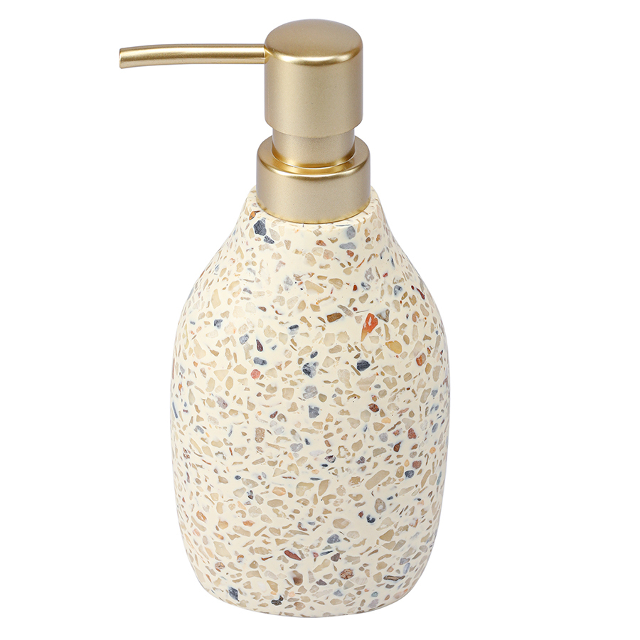 Материалы: терраццо, полирезин, ABS-пластик, полипропилен. Размеры: 8,2х6,3х18,5 см. Объем: 180 мл. Цвет: светло-бежевый.