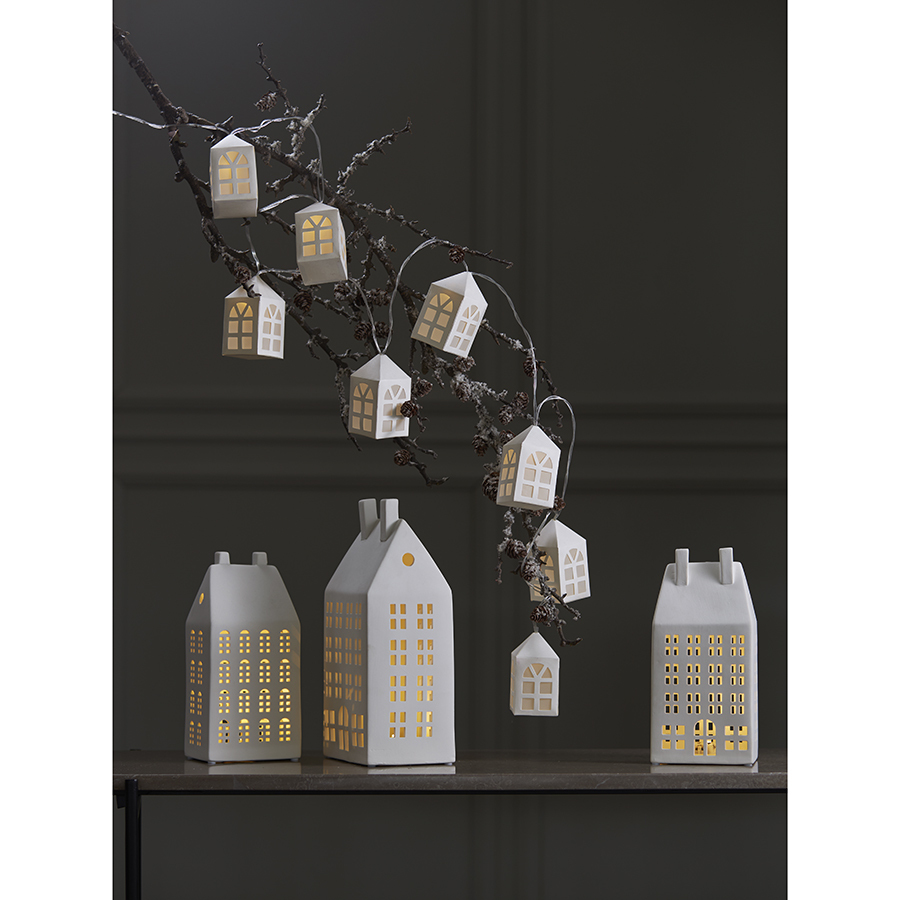 Домик из фарфора Aalborg из коллекции New Year Essential – не просто украшение, а символ волшебства, надежды и семейного благополучия. Разместите его на праздничном столе, полке или окне, и он сразу преобразит пространство, создав атмосферу тепла и уюта. Благодаря подсветке с мягким свечением такой декор идеально подойдет в качестве ночника и станет отличной альтернативой свечам. Изделие из фарфора отличается прочностью, долговечностью и привлекательным внешним видом. Аксессуар изготовлен с любовью, которую вы непременно почувствуете, как только откроете коробку. В комплекте 3 батарейки LR44.