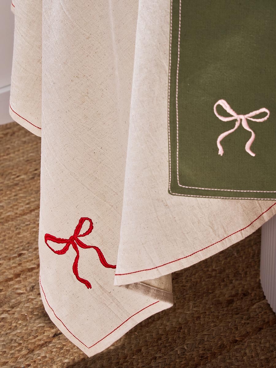 Дорожка на стол Fancy Bows оливкового цвета из коллекции Essential, 45x150 см