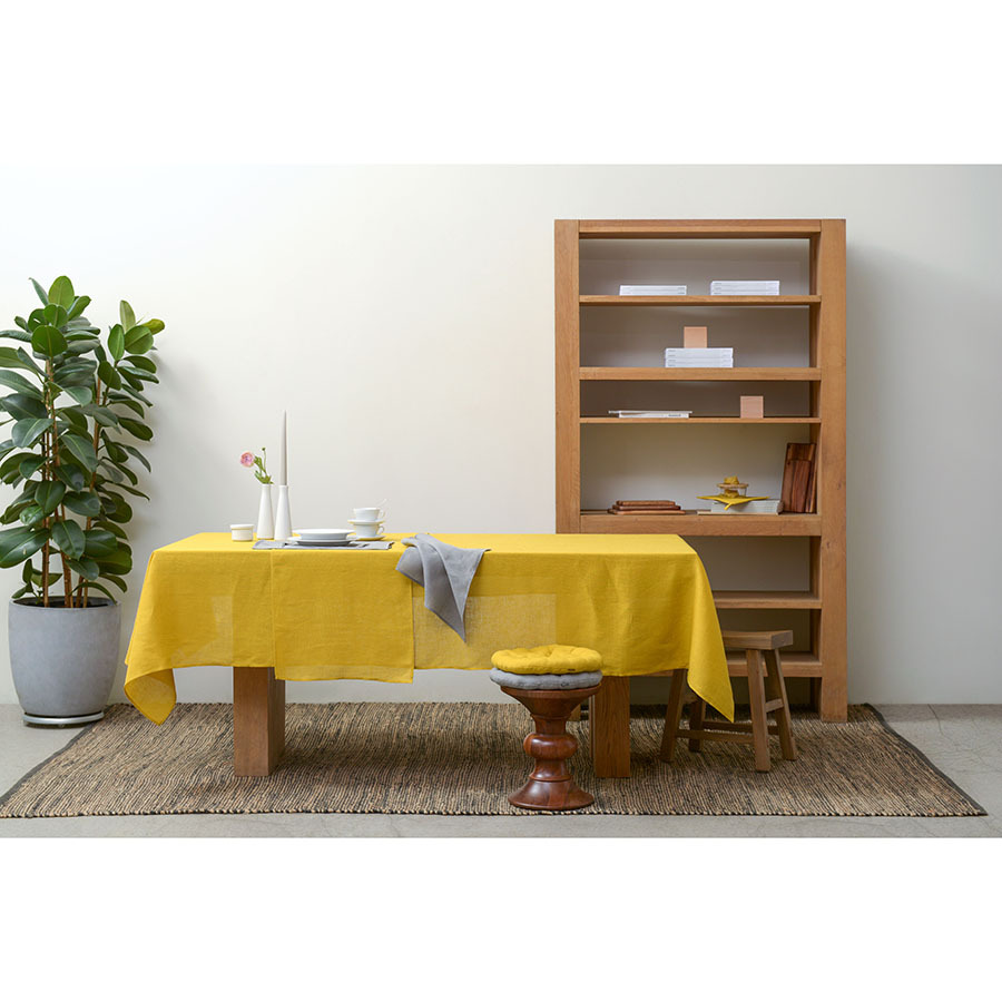 Дорожка на стол из стираного льна горчичного цвета из коллекции Essential, 45х150 см