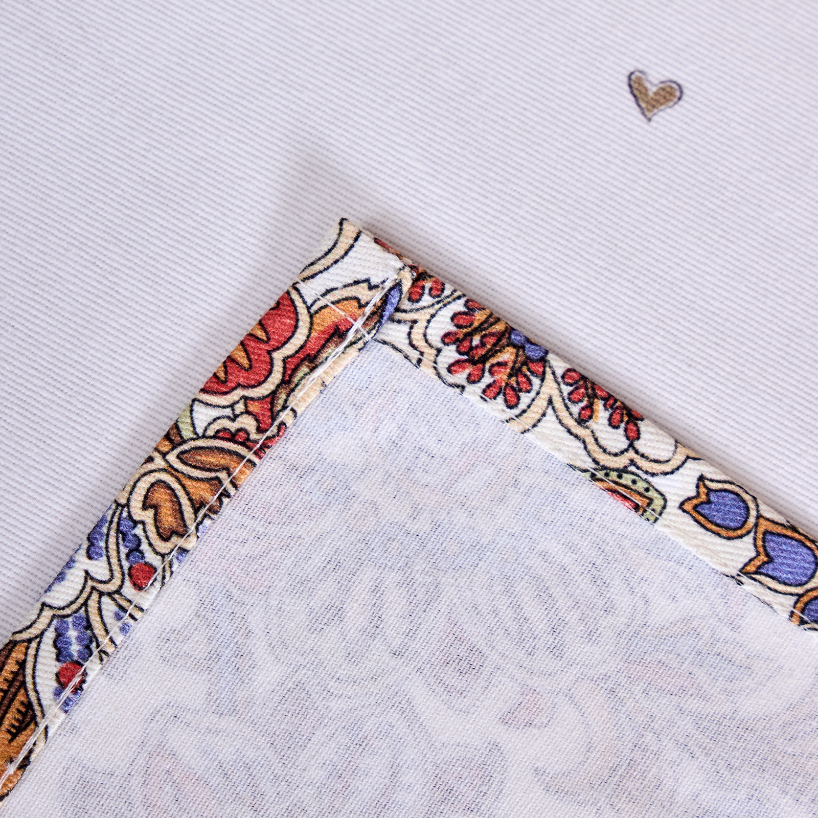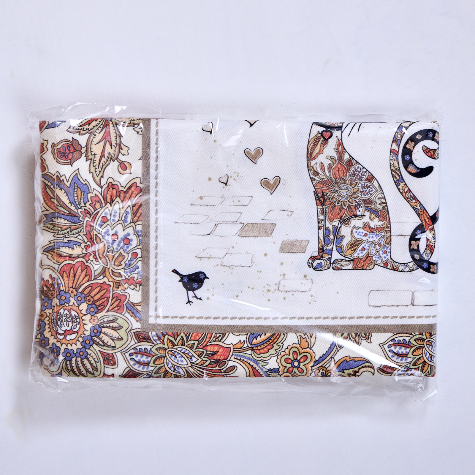 Особым направлением бренда «SANTALINO» , является изготовление столового белья ( скатерти , салфетки, дорожки (раннер), плейсметы, полотенца, фартуки) , по эксклюзивным дизайнам наших художников, воплощённых в цифровой печати, на современном оборудовании. Для пошива изделий используются только натуральные материалы 100% хлопок , плотность ткани составляет 190 гр\м2, она имеет приятную структуру в мелкий рубчик и называется твил, отличается хорошей капелярностью (впитываемость влаги), драпируемостью, износостойкостью, ткань проходит процесс каландрирования, что делает её более плотной и придаёт лёгкий атласный блеск, предотвращает образование так называемых «катышек» т.е уменьшается пилингуемость ткани. Цифровая печать позволяет перенести на изделия не только всё богатство красок и оттенков, но и придать особую прочность крашению, ткань не теряет своей яркости даже после 100 стирок. Изделия легки и не прихотливы в уходе, стирать нужно при температуре 40С , гладить при темпенратуре от 110-170С с отпариванием, но нельзя подвергать хлорному отбеливанию .Для удобства эксплуотации на ряд изделий, такие как фартуки , скатерти, дорожки, может наноситься водогрязеотталкивающая пропитка которая не влияет на внешний вид изделия, но позволяет избежать сильного загрязнения при использовании.