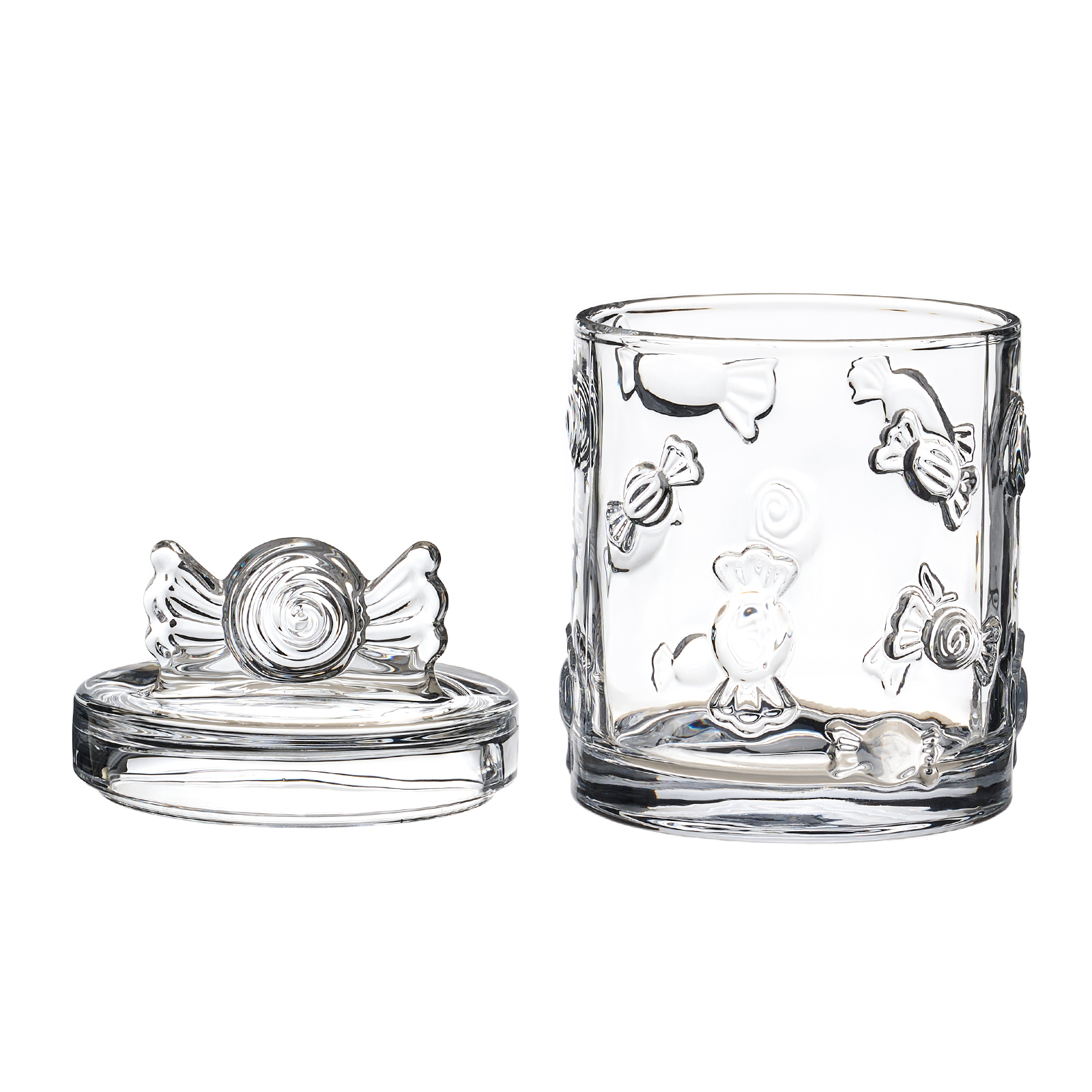 Эта ёмкость — настоящее произведение искусства, созданное из прозрачного стекла и украшенное уникальными рельефными узорами. Каждая линия, каждый элемент дизайна отражает историю и мастерство, воплощённые в этом предмете. Она не просто ёмкость для хранения — это настоящий декоративный аксессуар, который преобразит любое пространство.