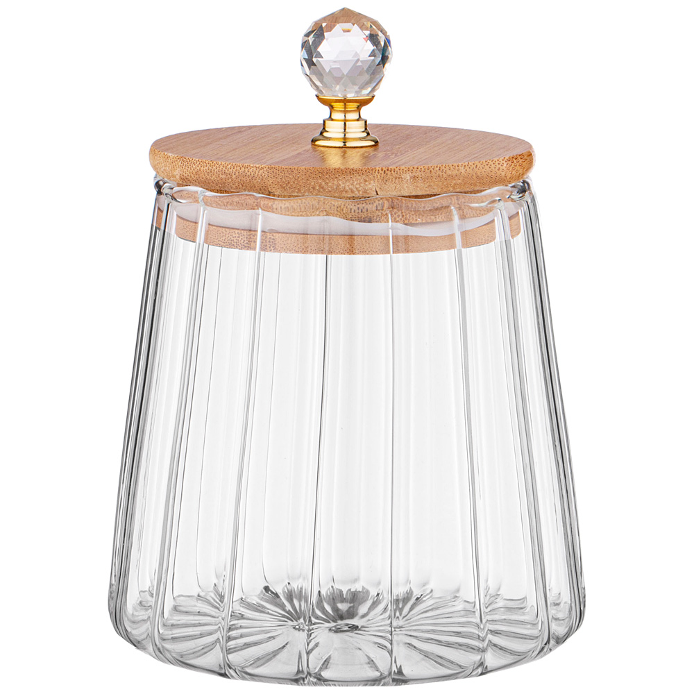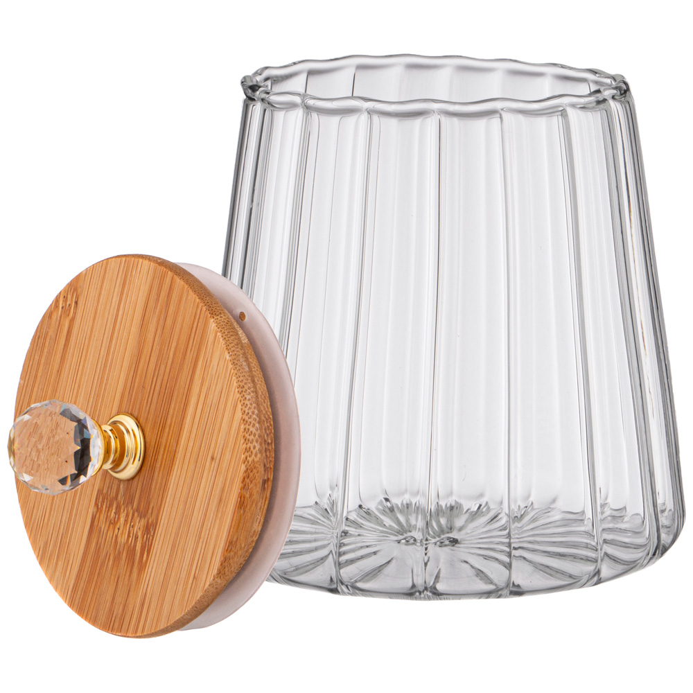 Емкость для хранения сыпучих сделана из прозрачного стекла, сквозь которого удобно контролировать содержимое.