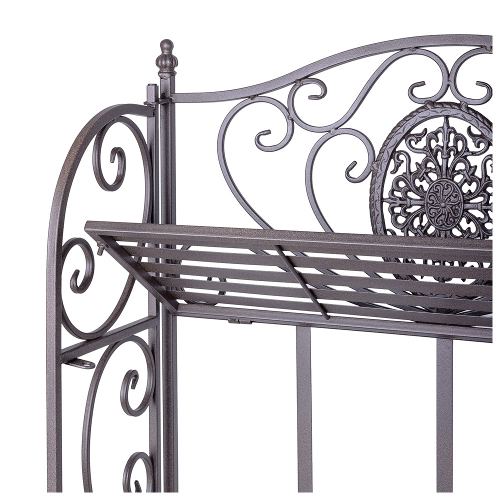 Данная этажерка выполнена из прочного металла. Она великолепно подойдет для кухни, спальни или гостиной. Скромная изысканность элементов идеально впишется как в домашнюю обстановку, так и украсит собой офисный интерьер. Особенность данных стеллажей заключается в открытости полок, когда с одной стороны у каждой вещи есть свое место, а с другой – всё очень легко найти, всё под рукой. Благодаря такой этажерке вам будет легко организовать пространство и при этом подчеркнуть его красоту. На удобных полках вы сможете поместить любимые книги, комнатные цветы, кухонную утварь, посуду или декоративные элементы. В данном стеллаже одновременно сочетаются практичность, удобство, функциональность и красота. Это прекрасный выбор для создания атмосферы и организации пространства, в котором каждый предмет имеет свое место.
