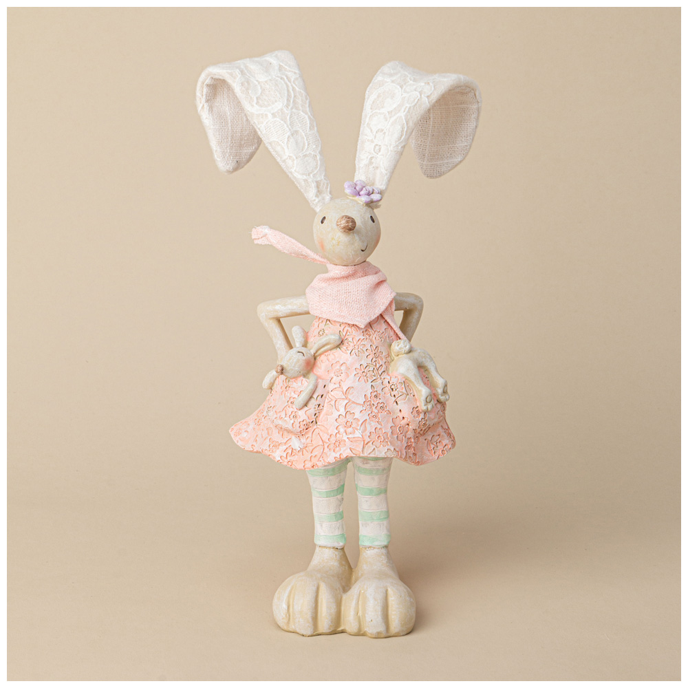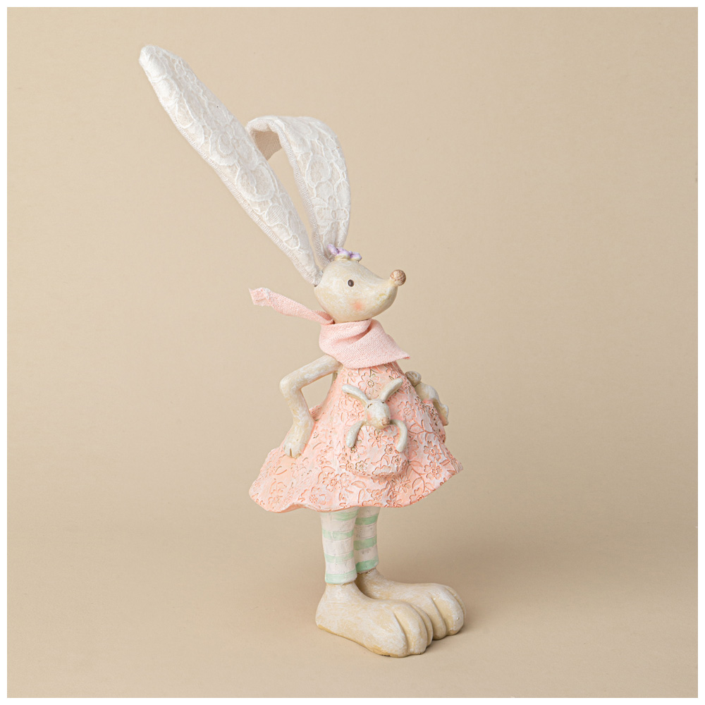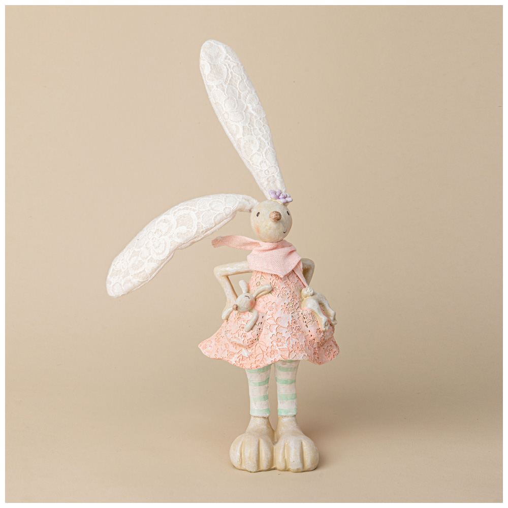 Эта очаровательная фигурка кролика — настоящая находка для любителей нежного и игривого стиля. С восхитительно большими ушами, обрамленными кружевом, и выразительными глазами, она излучает тепло и радость. Кролик одет в красивое платье из тонкой кружевной ткани нежно-розового цвета, которое придаёт ей изысканность и утонченность.
