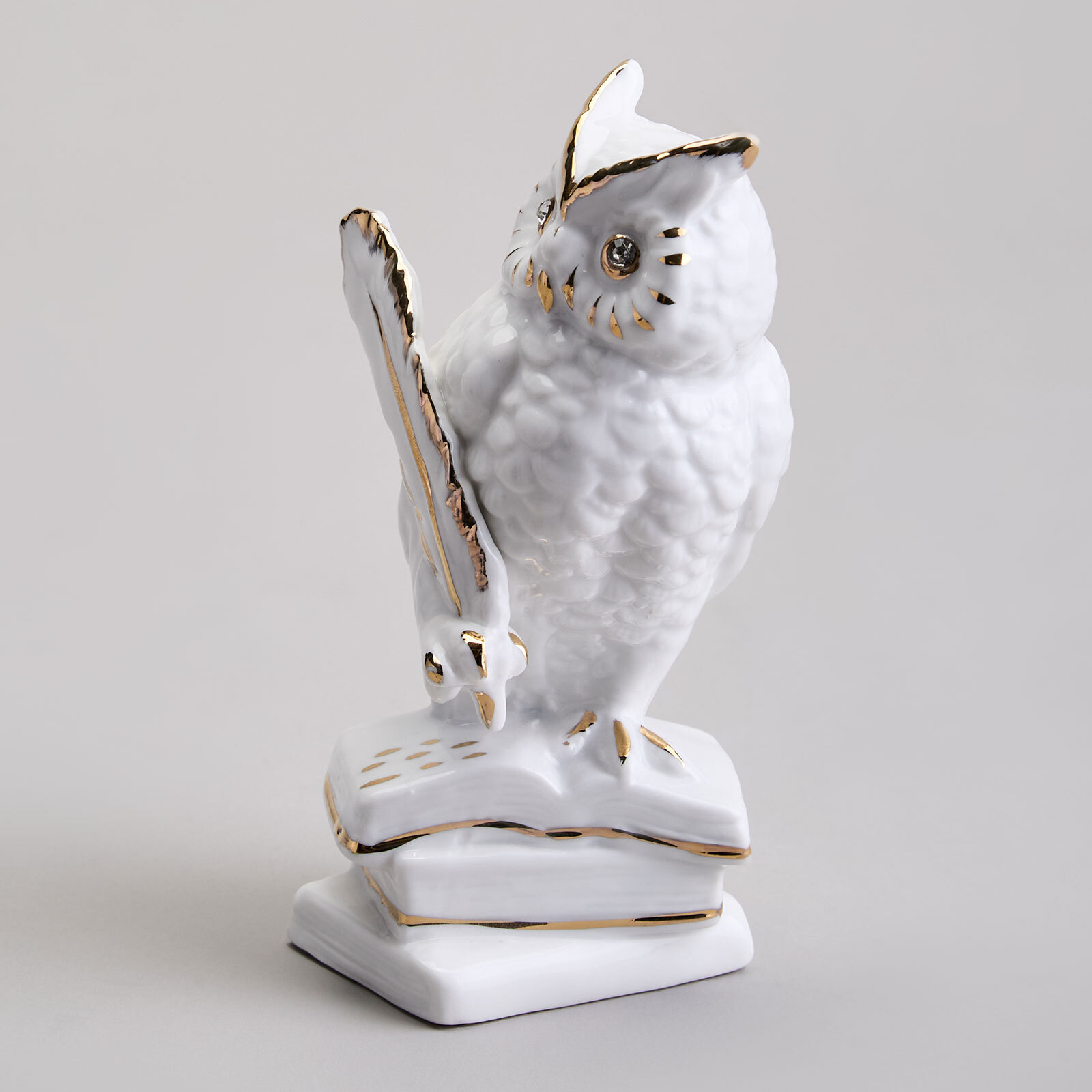 • Изысканная отделка: Ненавязчивый белый цвет, сочетающийся с золотыми акцентами, придаёт фигурке утончённость и элегантность. Золотые детали подчеркивают грациозность совы и придают ей особый шарм.