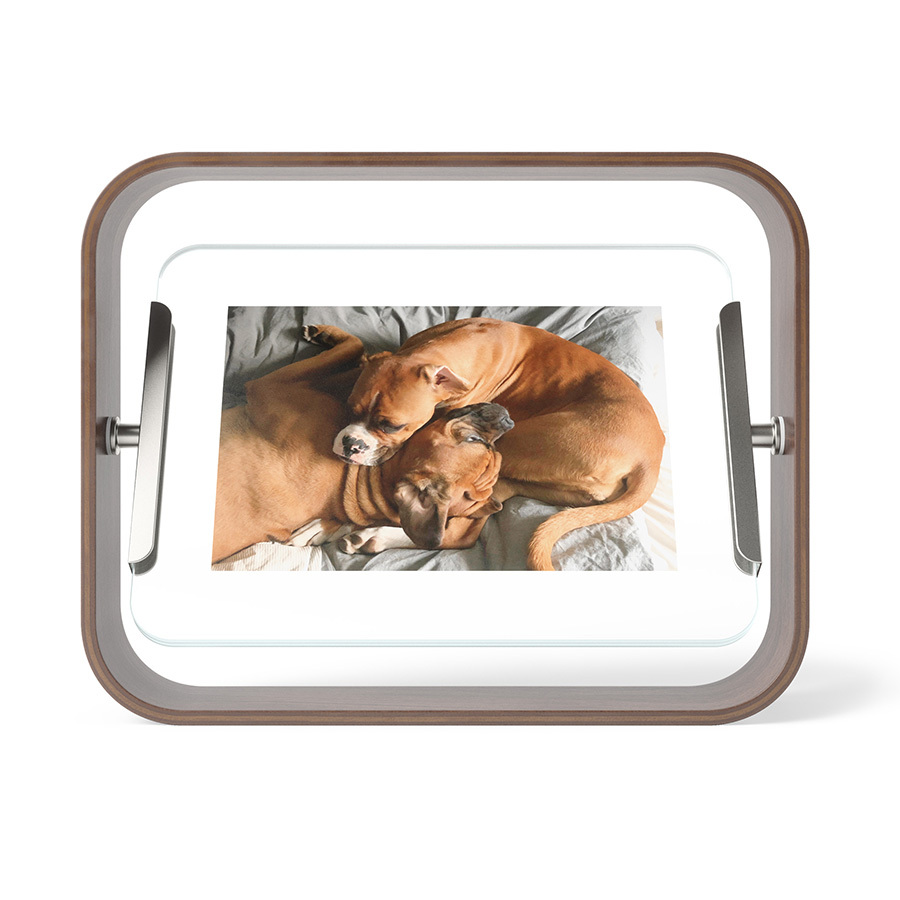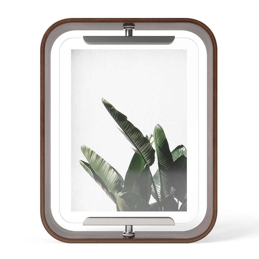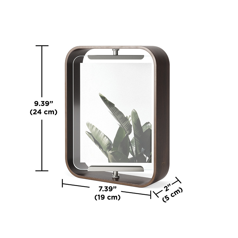 Фоторамка Bellwood добавит природное очарование в любое пространство, будь то жилая комната, кабинет или офис. Центральная часть рамки плавно вращается, что дает возможность демонстрировать поочередно две фотографии. Специальная конструкция позволяет менять параметры ориентации и размещать изображения как в портретном, так и альбомном режиме. Сочетание натуральной древесины и стекла обеспечивает изделию практичность, долговечность и привлекательный вид.