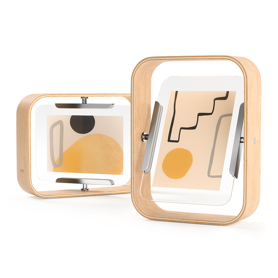 - Вращение на 360° и двусторонняя конструкция позволяет легко переключаться между портретной и альбомной ориентацией, а также менять само изображение.