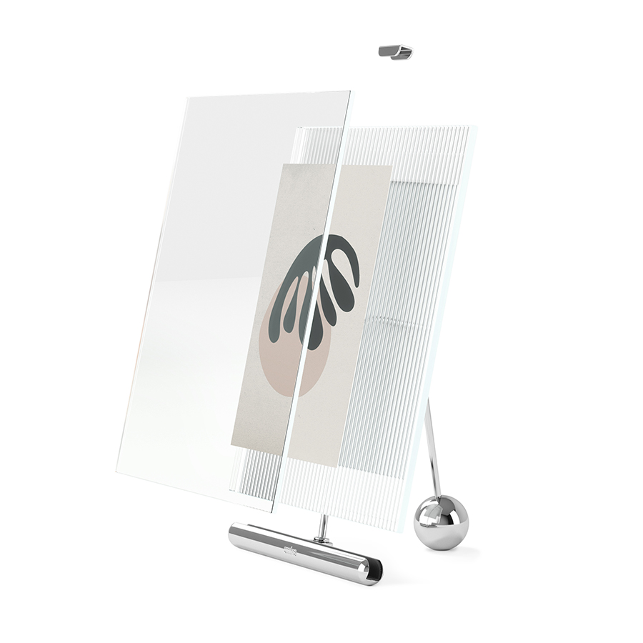 Фоторамка Flute превращает обычную фотографию в художественное произведение. Ребристая текстура стекла создает эффект легкой воздушности. Полированный металл добавляет благородного сияния, придавая изображению глубину и утонченность.