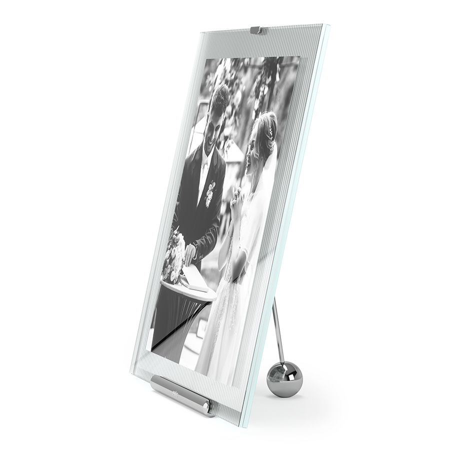 Фоторамка Flute превращает обычную фотографию в художественное произведение. Ребристая текстура стекла создает эффект легкой воздушности. Полированный металл добавляет благородного сияния, придавая изображению глубину и утонченность.